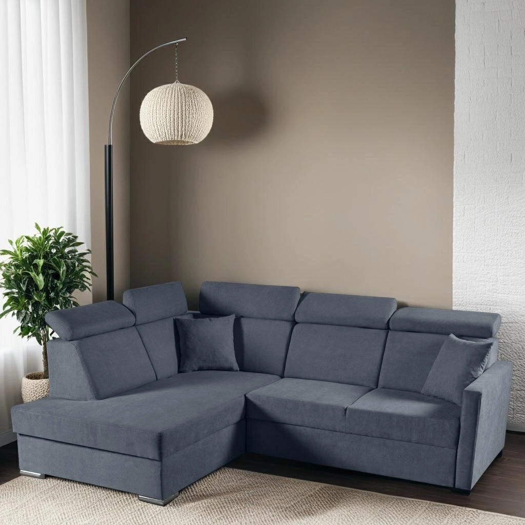 Rohová sedačka s rozkládací funkcí Mils XL od značky Intesi je moderní, levostranný nábytek do obývacího pokoje, který zaujme sametovým potahem v odstínech šedo-modré. Šířka a hloubka 180 cm poskytují pohodlný prostor pro tři osoby, zatímco plocha na spaní 120×195 cm umožňuje komfortní využití jako přistýlka. Praktický úložný prostor na lůžkoviny a snadný systém rozkládání zvyšují funkčnost této rohové pohovky a činí z ní ideální řešení pro každodenní použití.