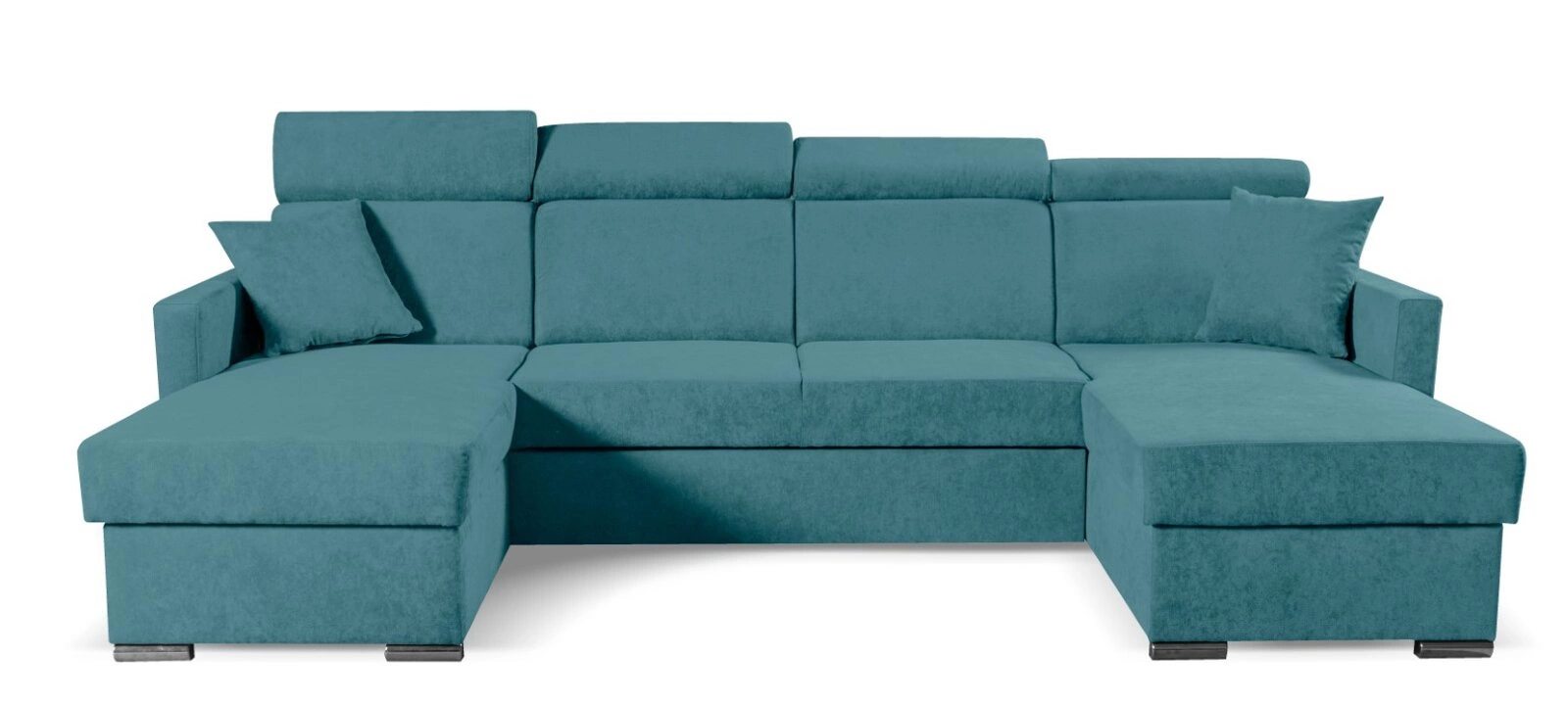 Rohová sedací souprava s funkcí spaní Mils od značky Intesi je moderní, U-čkový odpočinkový nábytek do obývacího pokoje v výrazné mořské barvě. Nabízí až čtyři pohodlná místa k sezení a po rozložení poskytuje velkou plochu na spaní 120×250 cm. Čalounění z sametové látky Soro v kombinaci s elegantními chromovanými nožkami dodává sedačce svěží, stylový vzhled a činí ji ideální volbou pro moderní interiéry.