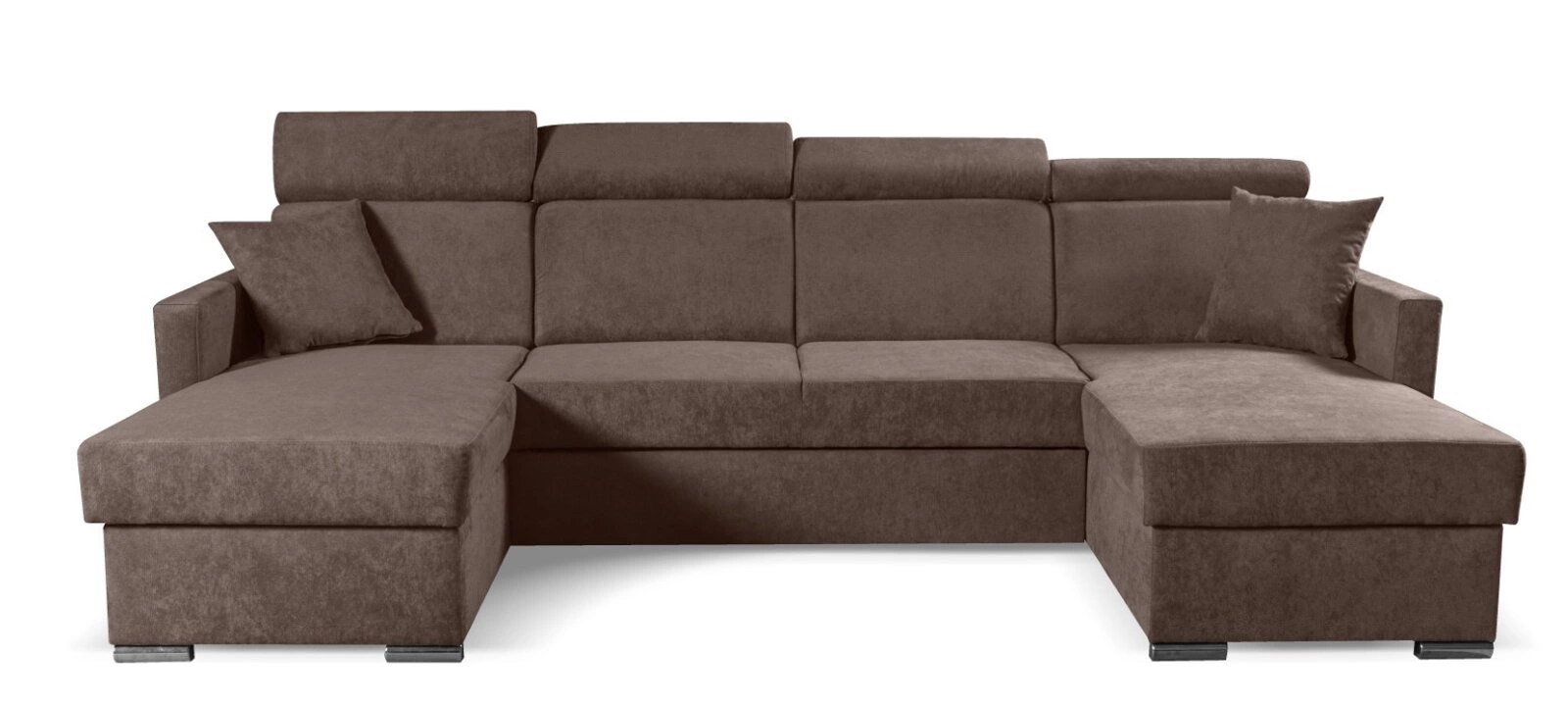 Rohová sedačka Mils U hnědá od značky Intesi je moderní rozkládací rohová sedačka ve tvaru písmene U, navržená pro obývací pokoje, kde je důležitý komfort, funkčnost a stylový vzhled. Potah z hebké sametové látky Soro v teplém hnědém odstínu nabízí až čtyři pohodlná místa k sezení a prostornou spací plochu 120×250 cm. Sedačka je vybavena úložným prostorem na lůžkoviny a komfortními područkami, takže je ideální volbou jak pro každodenní relaxaci, tak i jako místo na spaní pro hosty.