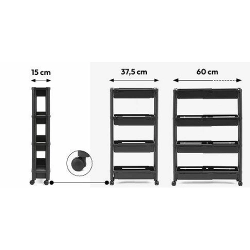 Vozík s funkcí rozšíření 4-úrovňový černý