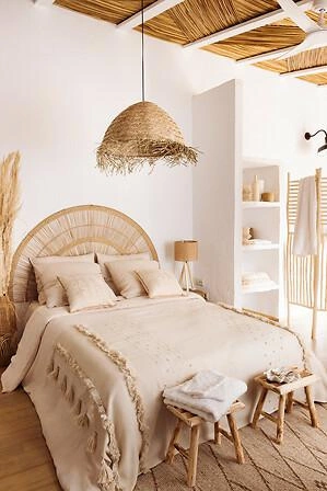Paraván Zahir je vyroben z topolového dřeva s certifikátem FSC, což zaručuje odpovědný původ materiálu a pevnost konstrukce. Bavlněná výplň jednotlivých křídel dodává paravánu nejen lehkost, ale také jemnou strukturu, která vnáší do interiéru teplo a útulnost. Přírodní odstín dřeva se skvěle hodí do boho, rustikálních i minimalistických interiérů, takže paraván snadno sladíte s různými styly zařízení.