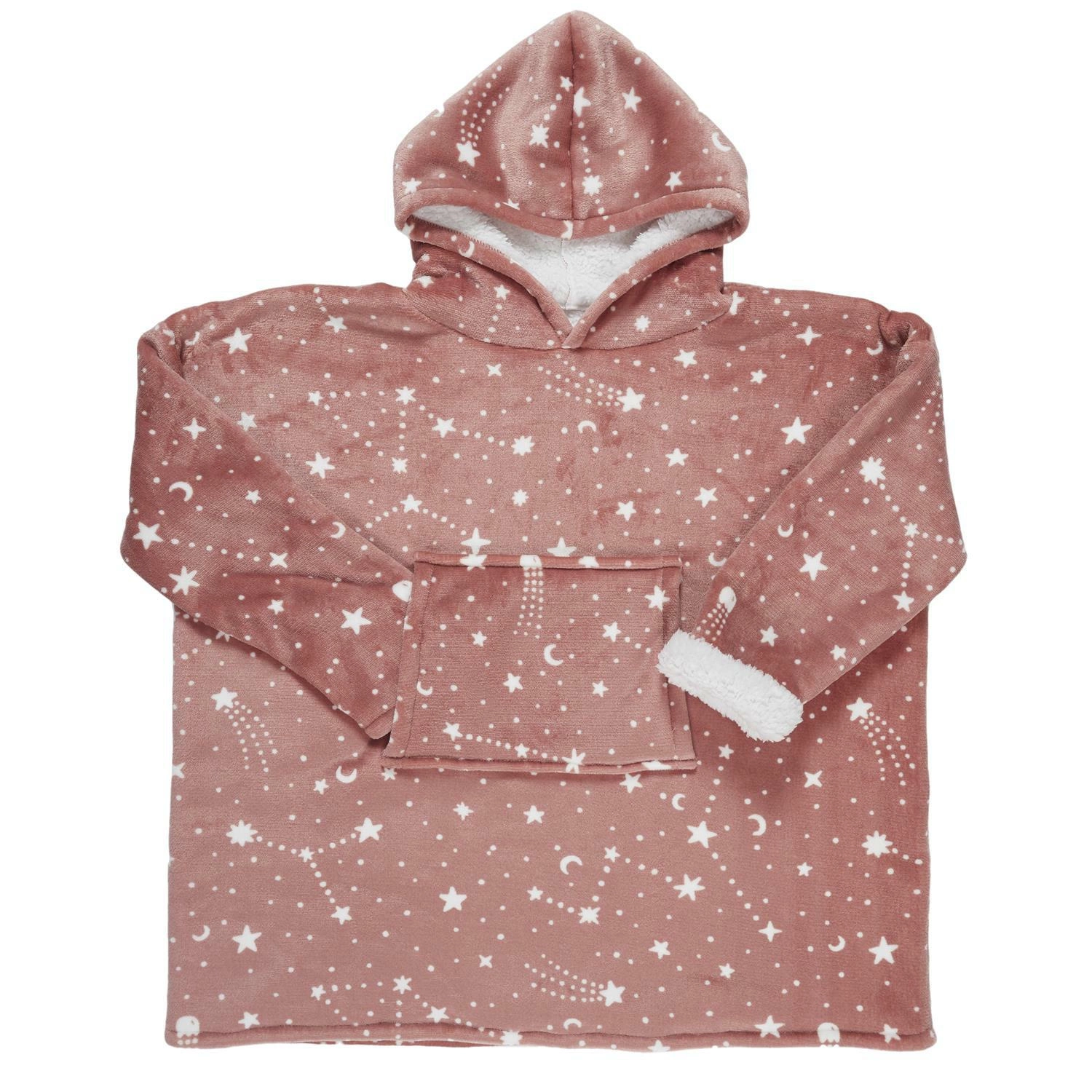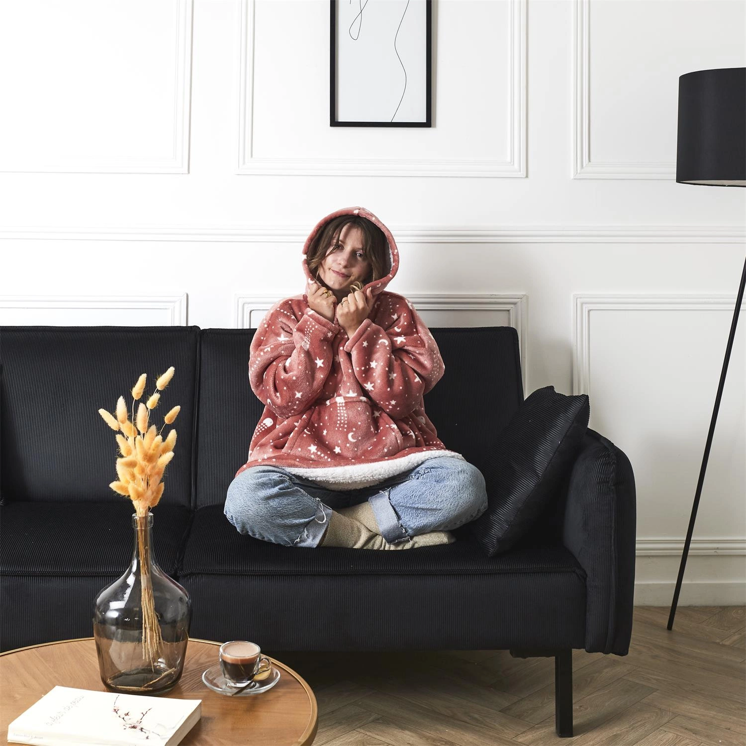 Astro růžová mikina deka s kapucí teplý fleecový na pohovku do obýváku Intesi