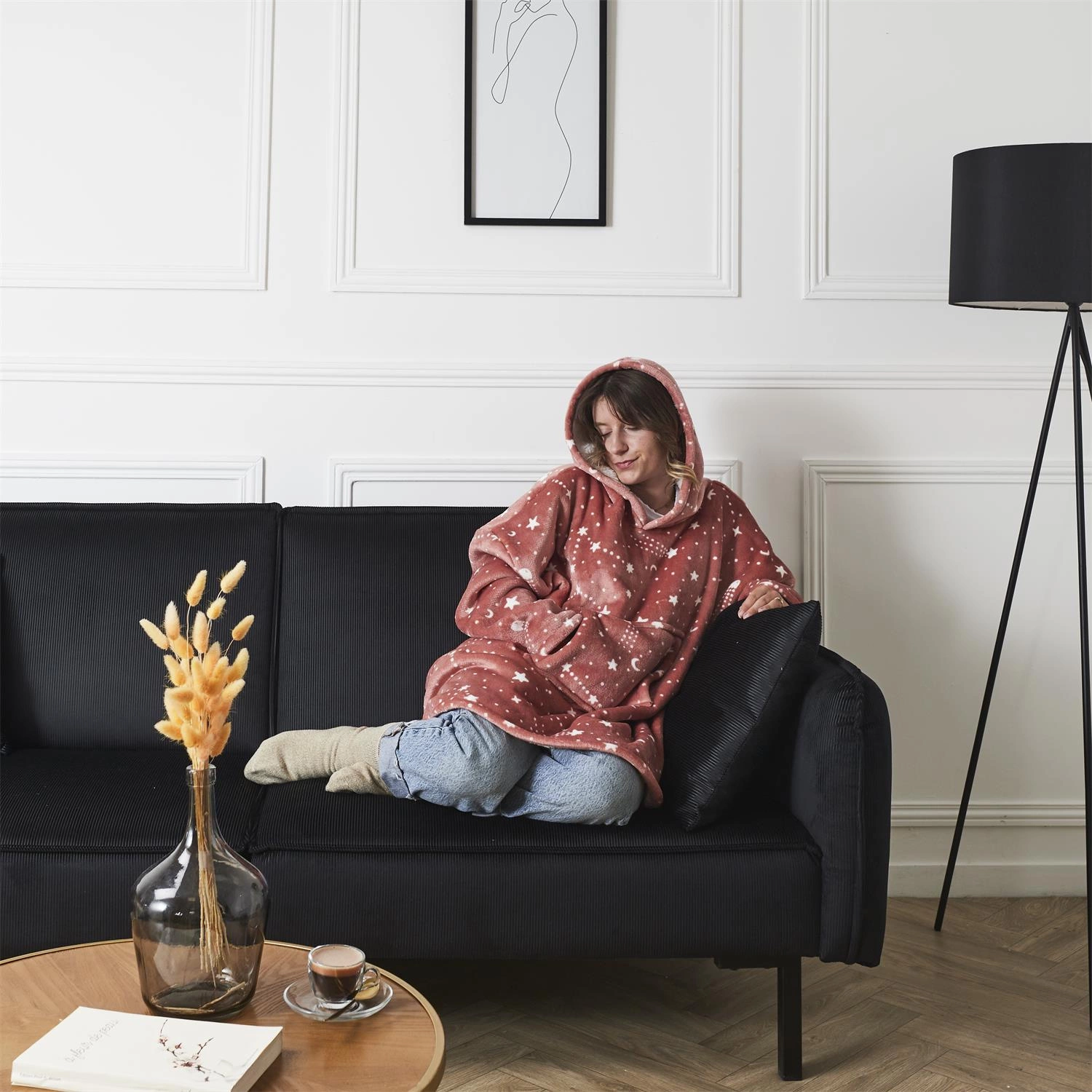 Astro růžová bluzo deka s kapucí byla navržena pro maximální komfort v pohodlí domova. Měkká fleecová deka zahřeje během filmových večerů, rodinných setkání nebo líných rán. Díky praktické kapuci a velké kapse si snadno zahřejete ruce nebo schováte oblíbenou knihu. Je to ideální volba na chladné dny – do obývacího pokoje, ložnice i studentského pokoje.