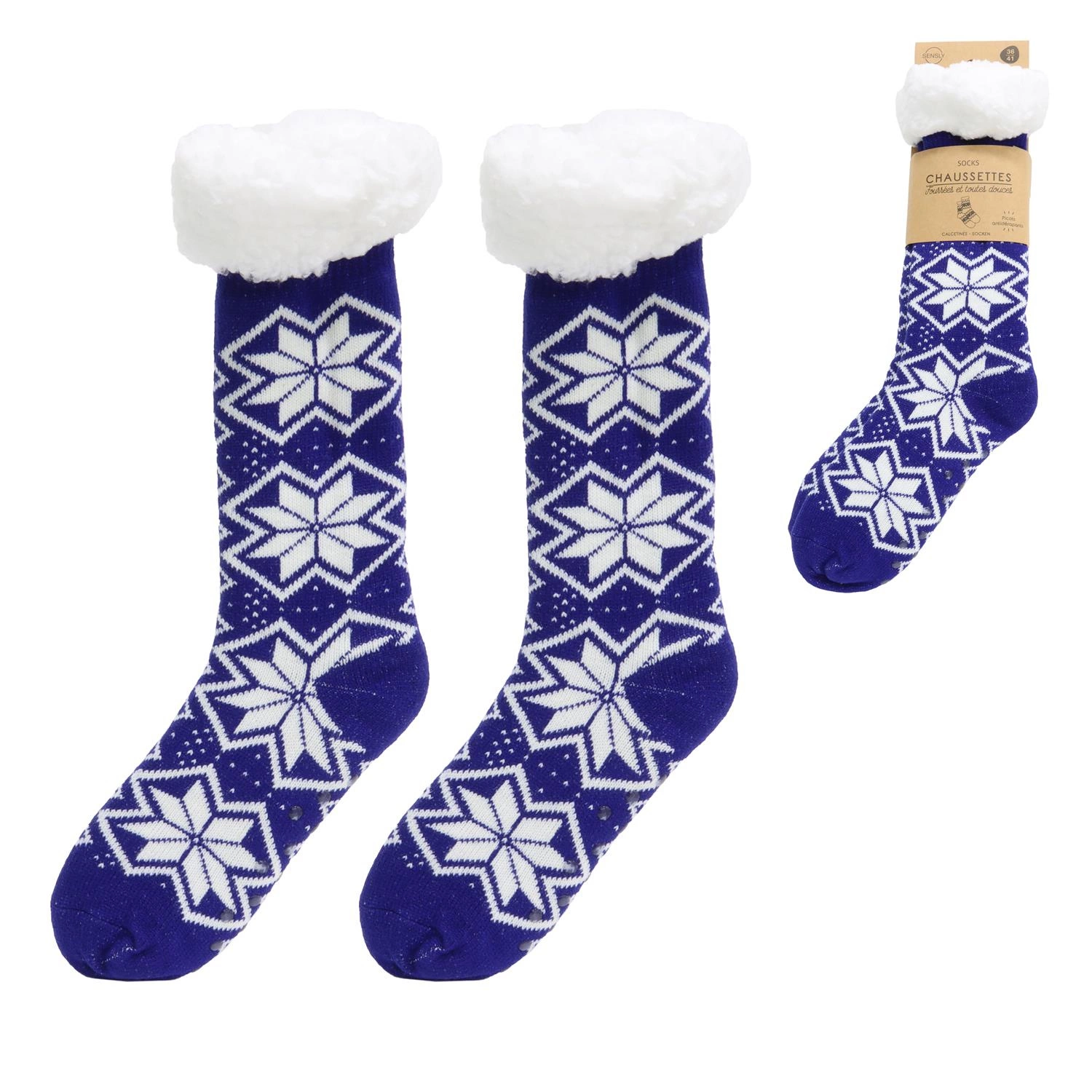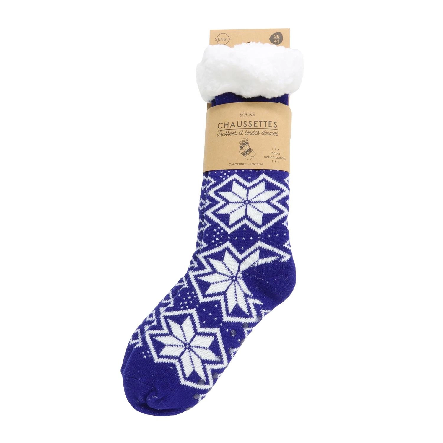 Intesi dámské zimní protiskluzové ponožky sněhové vločky tmavě modré s kožíškem 36-41 představují stylovou a praktickou volbu pro chladné dny. Jsou vyrobeny z měkkého, příjemného materiálu, který poskytuje teplo a pohodlí během nošení doma. Dámské ponožky v hlubokém tmavě modrém odstínu se subtilním vzorem sněhových vloček mají protiskluzovou podrážku a uvnitř měkký kožíšek – ideální pro zimní večery v obýváku nebo ložnici.