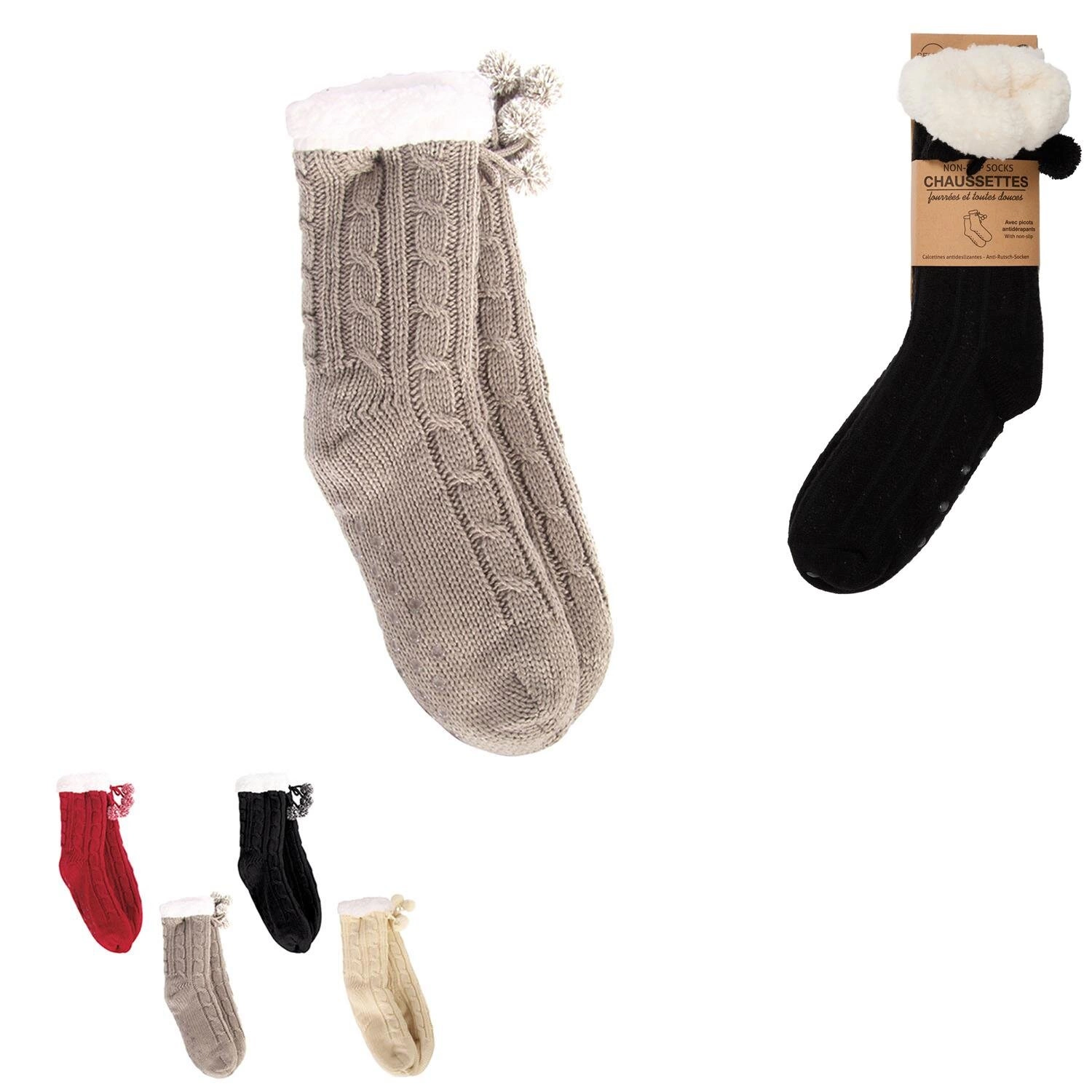 Intesi dámské protiskluzové ponožky šedé s copánkovým vzorem a bambulkami jsou teplým, stylovým doplňkem do domácího šatníku. Vyrobené z příjemně měkké pleteniny nabízejí ideální kombinaci pohodlí a bezpečí díky protiskluzové spodní vrstvě. Šedá barva a módní bambulky podtrhují moderní charakter produktu, který se skvěle hodí do obývacího pokoje nebo ložnice, v univerzální velikosti 36–41.