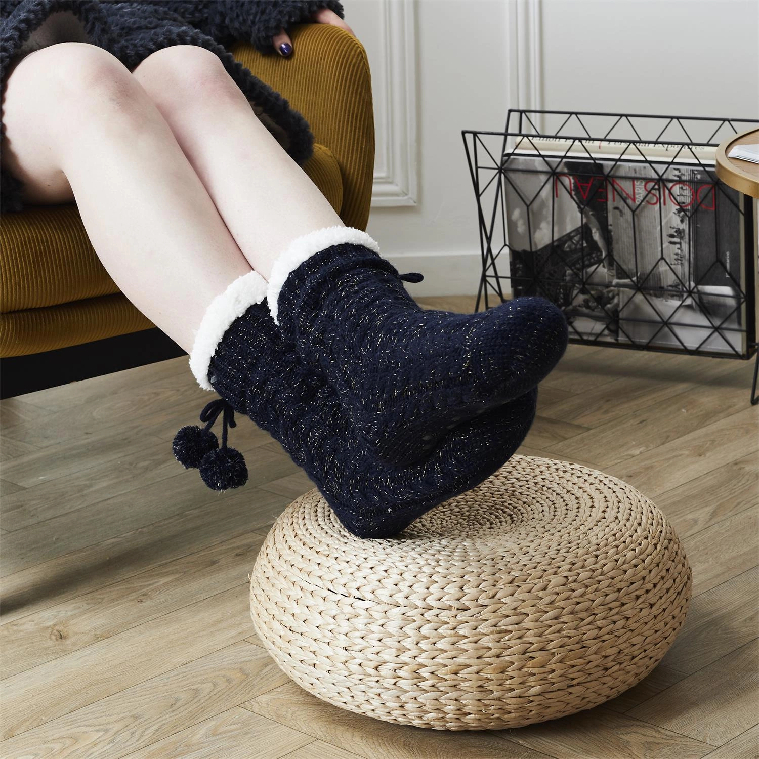 Ponožky v copánkovém pletení námořnické modré v Češtině