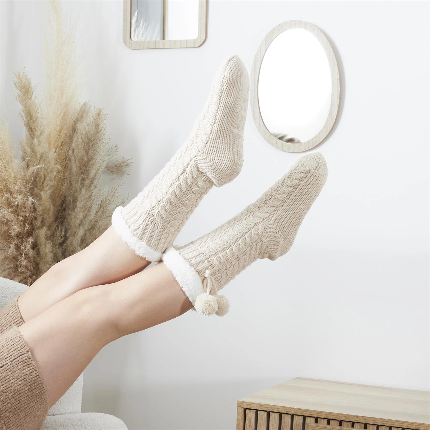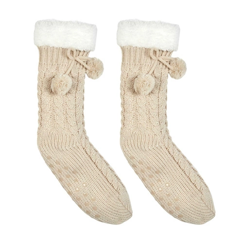 Protiskluzové ponožky Intesi béžové s copánkovým vzorem jsou ideální volbou pro ty, kteří si cení domácí pohody a útulného stylu. Vyrobené z měkkého materiálu poskytují příjemné teplo a pohodlí během chladnějších dnů. Typický copánkový úplet a jemná béžová barva jim dodávají moderní a zároveň univerzální vzhled, který skvěle zapadne do interiéru obývacího pokoje i ložnice.