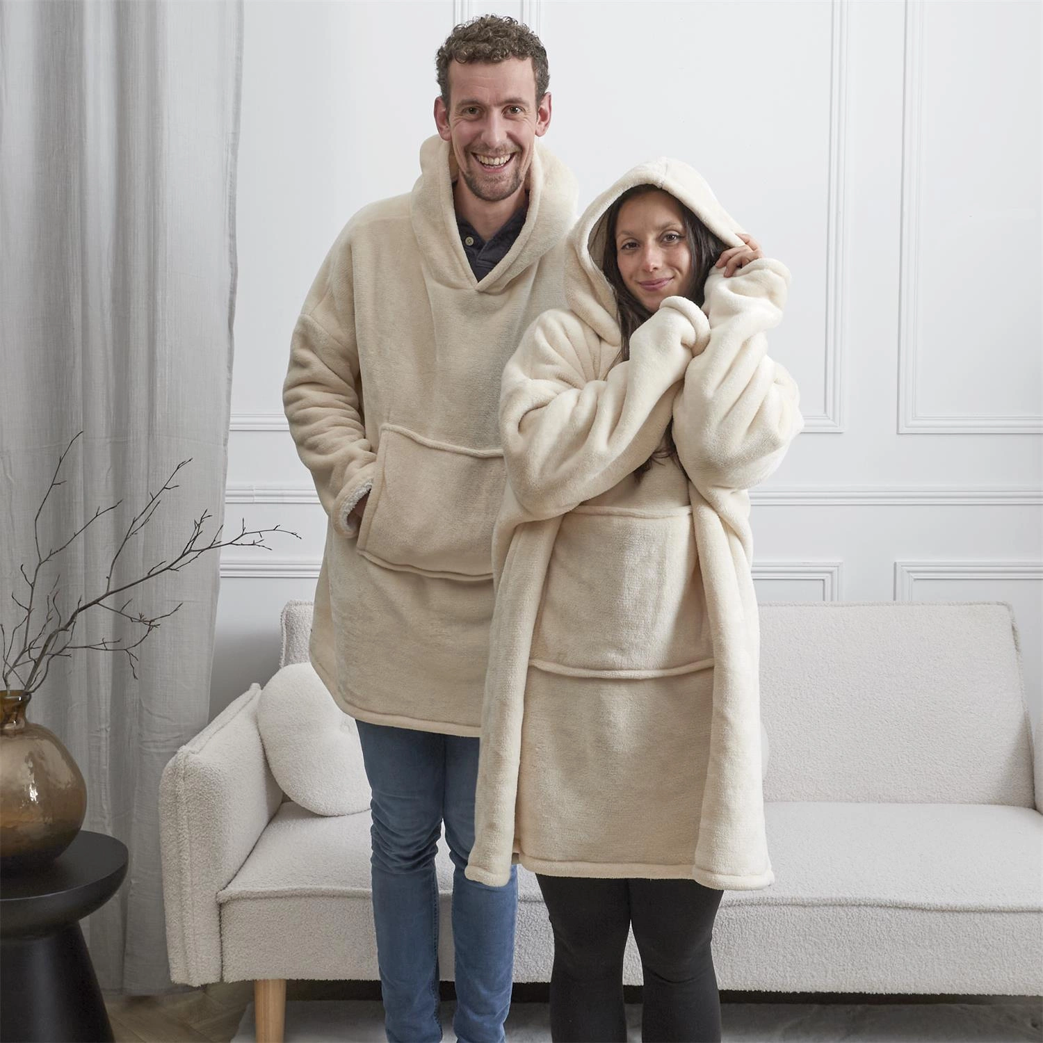 Bluzo koc Intesi není jen teplá deka do obýváku, ale také praktický doplněk pro každodenní použití. Kapuce chrání hlavu a krk před průvanem a díky prostornému střihu se snadno zabalíte do celé deky. Možnost praní v pračce usnadňuje údržbu a čistotu, což oceníte při běžném používání. Béžový odstín dodává interiéru útulnost a harmonii, perfektně ladí s moderním i boho stylem bydlení.