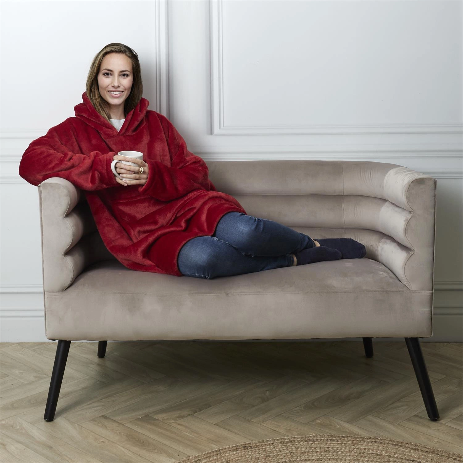 Intesi Snuddie deka s rukávy červená je mimořádně teplý a pohodlný doplněk do vašeho domova, který spojuje pohodlí deky a funkčnost mikiny. Vyrobená z měkkého materiálu o gramáži 240 g/m² zaručuje tepelný komfort i během nejchladnějších zimních večerů. Široký střih a dlouhé rukávy vás zahřejí po celé délce těla, zatímco sytě červená barva vnese energii do každého interiéru.