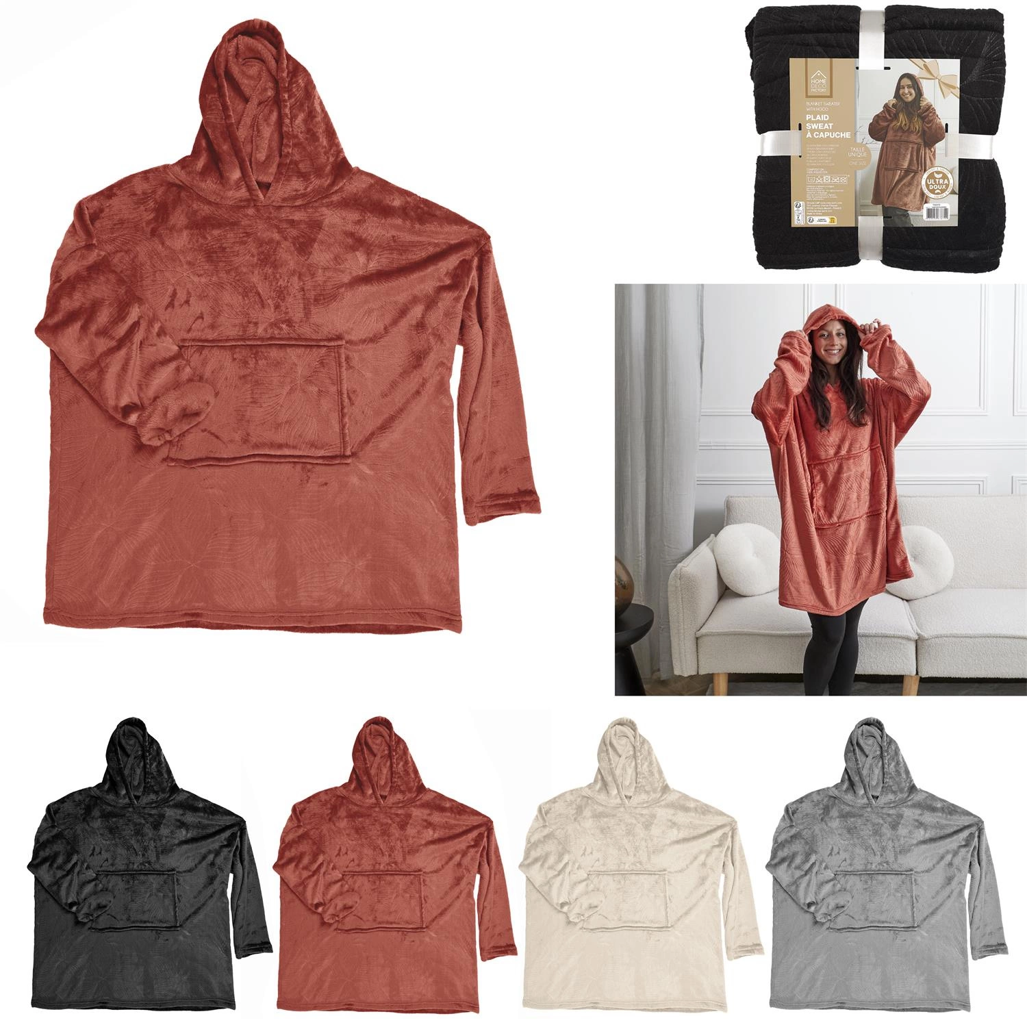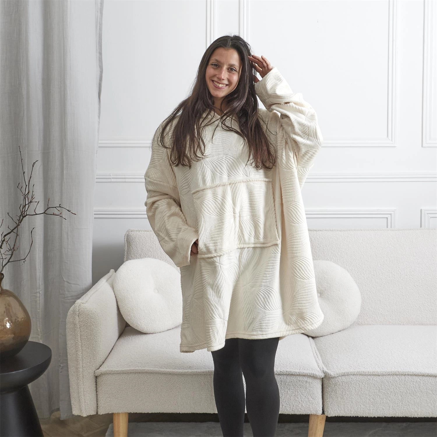 Když je venku chladno, bluzo koc Intesi se stane vaším osobním kokónem tepla. Plyšový materiál je mimořádně měkký a příjemný na dotek, takže každý okamžik strávený v tomto kousku je čistým potěšením. Široký střih zajišťuje úplnou volnost pohybu a praktická kapuce chrání hlavu před studeným vzduchem – ideální při večerním čtení, sledování filmů nebo během líného rána.