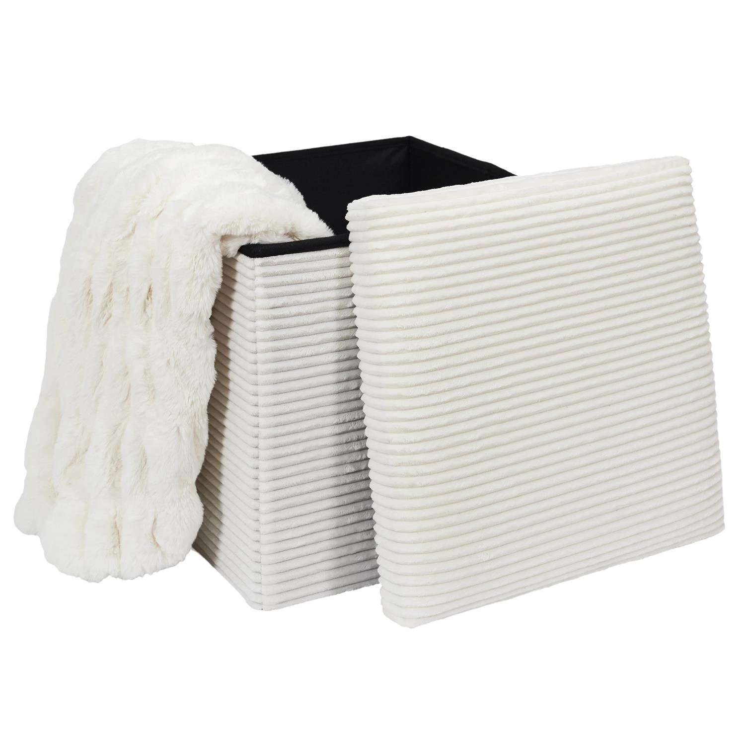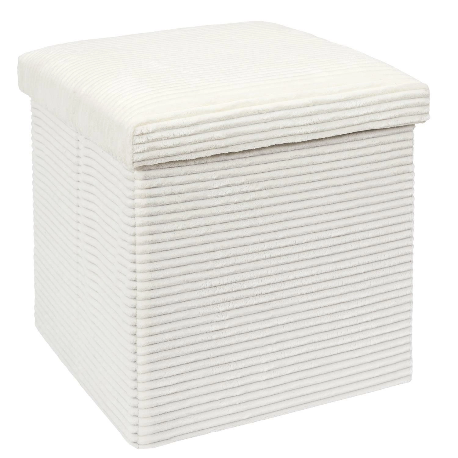 Skládací čtvercová taburetka Intesi Vels Scott s úložným prostorem, béžový manšestr 38x38 cm do obýváku