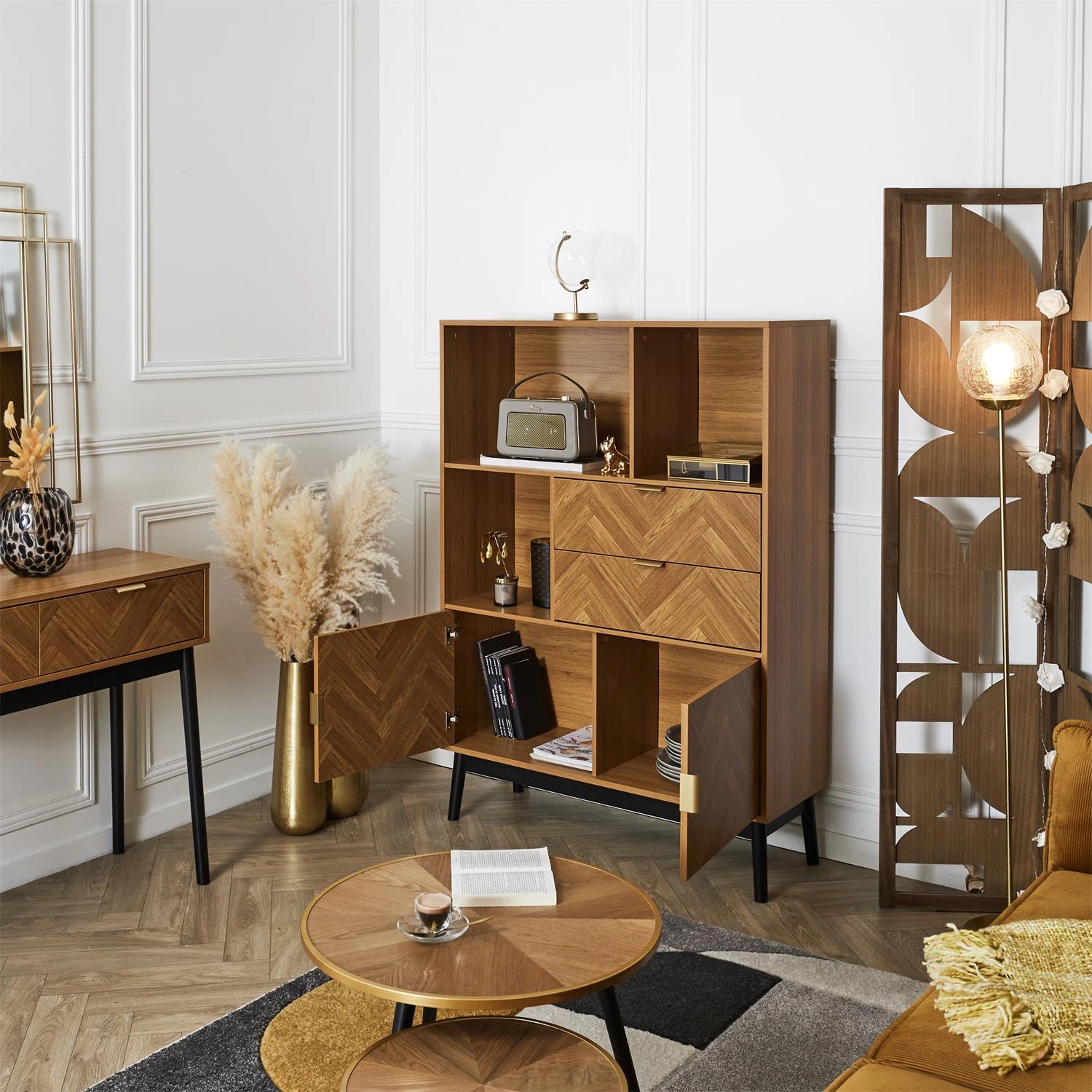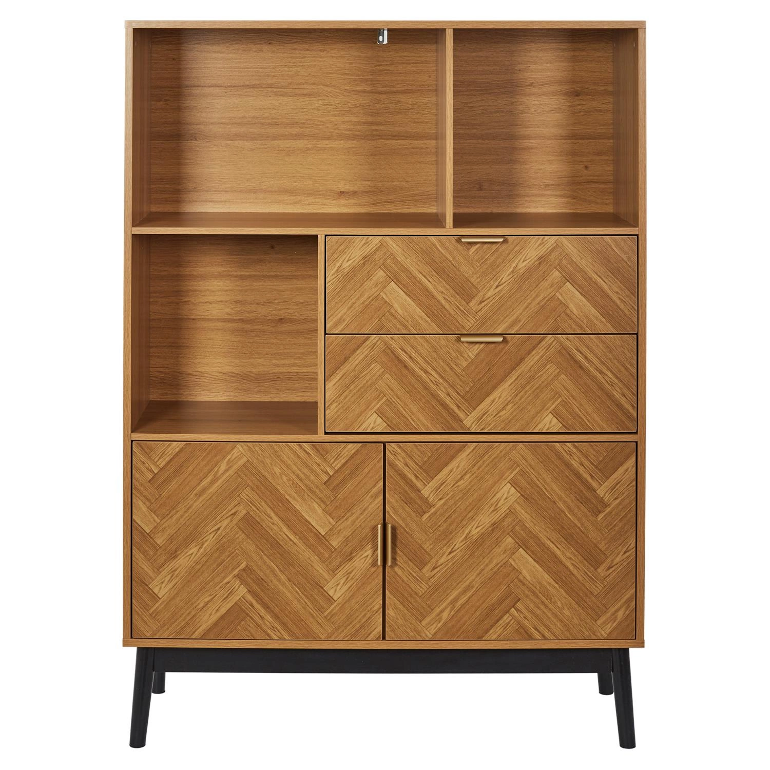- 2 prostorné zásuvky s čelem ve vzoru rybí kosti – rychlý přístup k drobnostem, které chcete mít po ruce