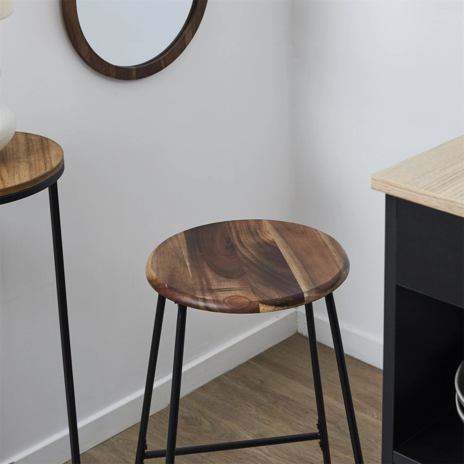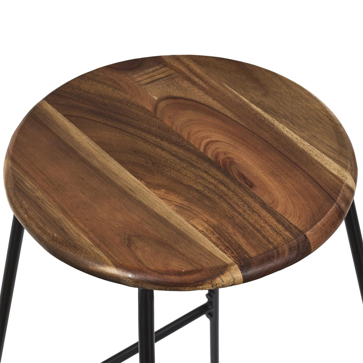 Barová stolička Prius bez opěradla z akáciového dřeva a černé oceli 70 cm loftová do kuchyně nebo k ostrůvku
