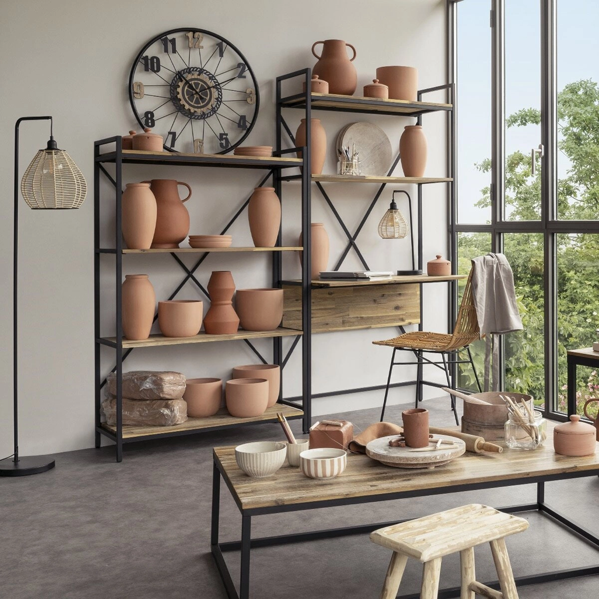 Noční lampička Delia od značky Atmosphera je jedinečné spojení rustikálního stylu s moderní funkčností. Zaujme černou, stabilní kovovou základnou a efektním, přírodním stínidlem z papíru o výšce 47,5 cm. Tato stolní lampa je ideální jako náladová noční lampička do ložnice nebo stylový doplněk na komodu v obývacím pokoji, kde poskytuje jemné, rozptýlené světlo pro večerní relaxaci.