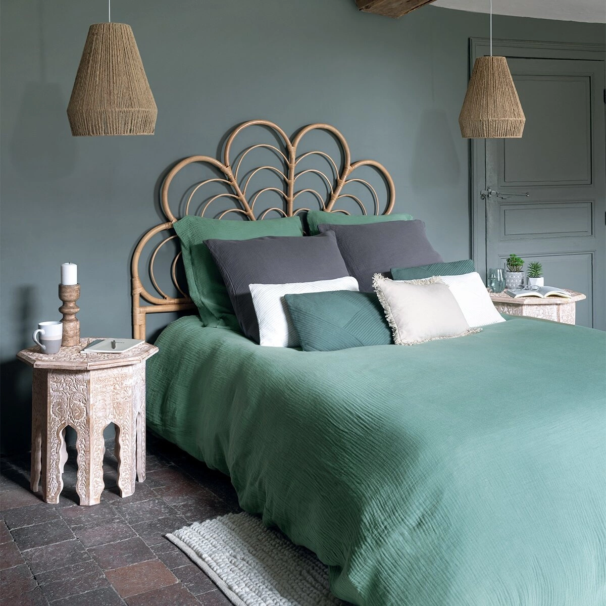 Lampa Palm se perfektně hodí do moderních, útulných interiérů inspirovaných přírodou. Její stínidlo z ručně pleteného jutového provazu v přírodní barvě skvěle zapadá do boho i rustikálních aranžmá, přináší do prostoru měkkost, teplo a originální akcent. Kulatý tvar a ručně tvořený vzor zdůrazňují osobitý styl, který vynikne v obýváku, jídelně i kuchyni. Skvělou volbou je také pro kavárny nebo restaurace, kde je důležitá jedinečná atmosféra.