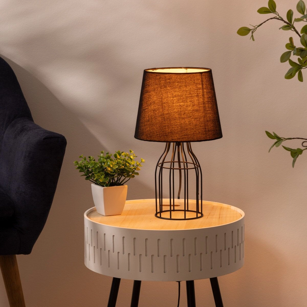 Noční lampička Moca od značky Atmosphera je moderní stolní lampa o výšce 35 cm, která zaujme minimalistickým designem a černým textilním stínidlem. Pevná železná základna zajišťuje stabilitu, zatímco jemně teplé světlo vytváří výjimečně útulnou atmosféru. Ideální jako noční lampička do ložnice, do obývacího pokoje nebo na pracovní stůl v domácí kanceláři – perfektně poslouží jak při večerním čtení, tak během relaxace po dlouhém dni.
