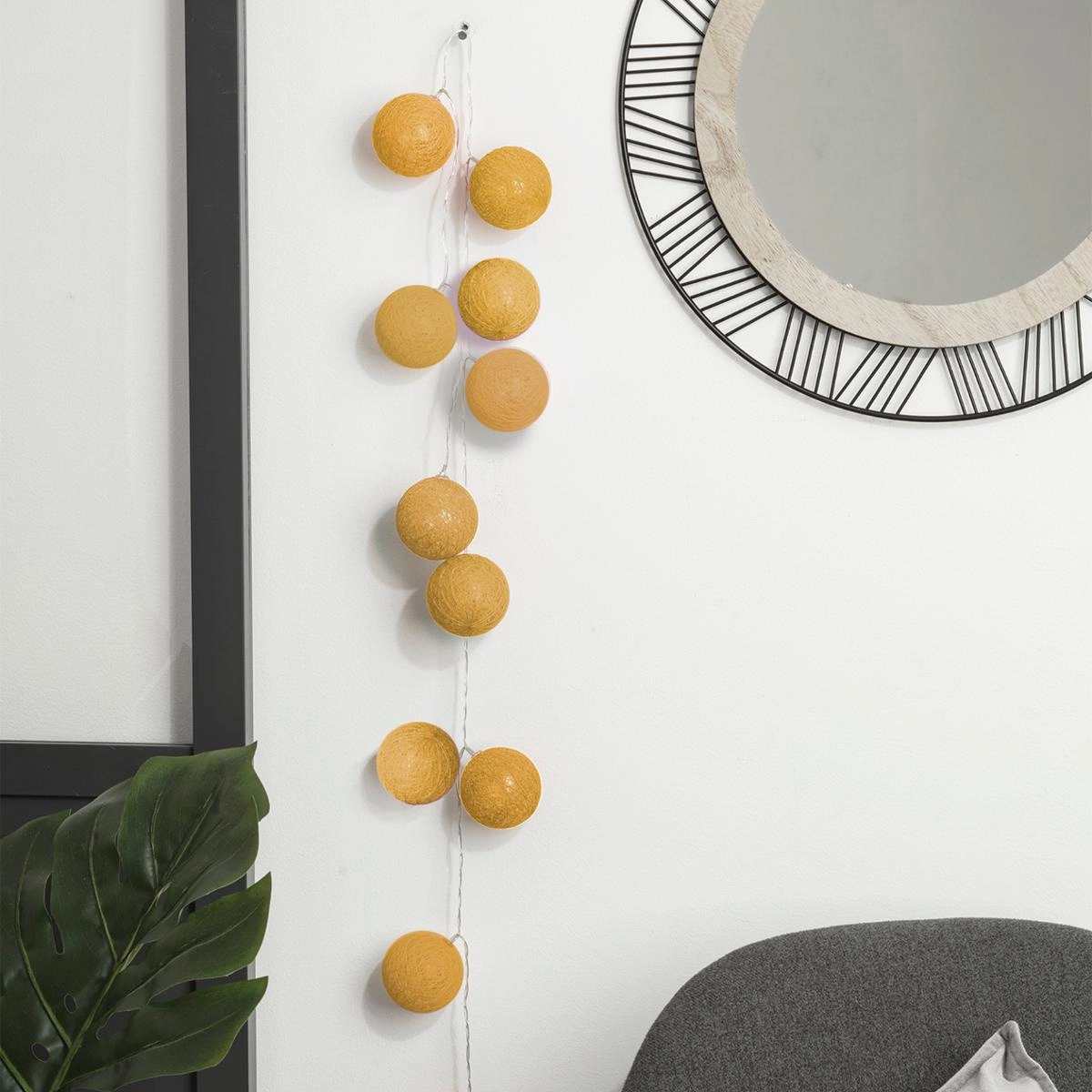 Žlutý LED řetěz vytváří jemné, teplé osvětlení, které vnáší do prostoru příjemnou a uvolněnou atmosféru. Skvěle poslouží jako cotton balls světýlka do dětského pokoje, jemně rozptyluje tmu a usnadňuje usínání. Díky stylovým, ručně vyrobeným koulím vypadá řetěz krásně zavěšený nad postelí, na stěně, okně nebo polici a podtrhuje jedinečný charakter interiéru.