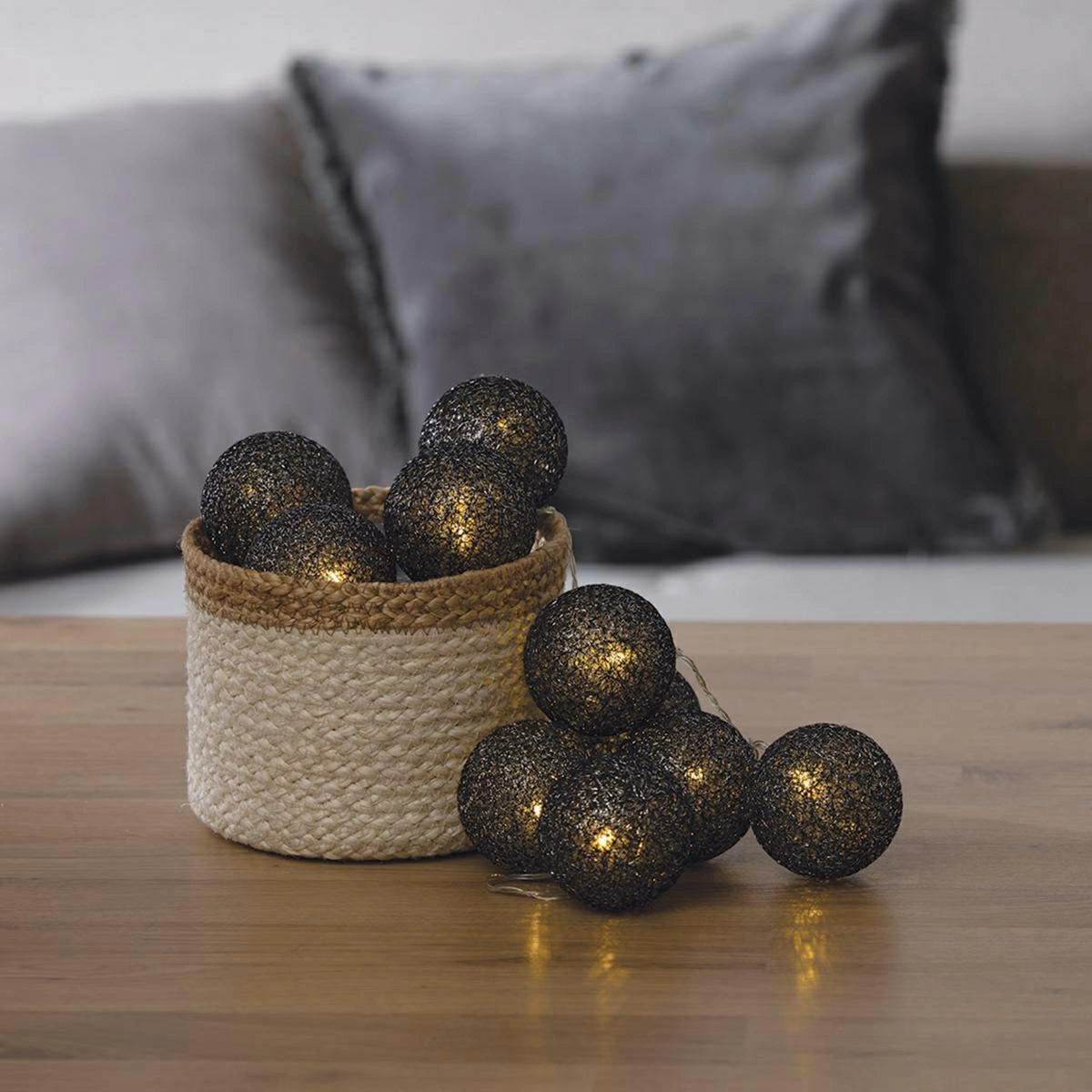 LED světelný řetěz cotton balls Atmosphera černé s třpytkami na baterie do obýváku a ložnice