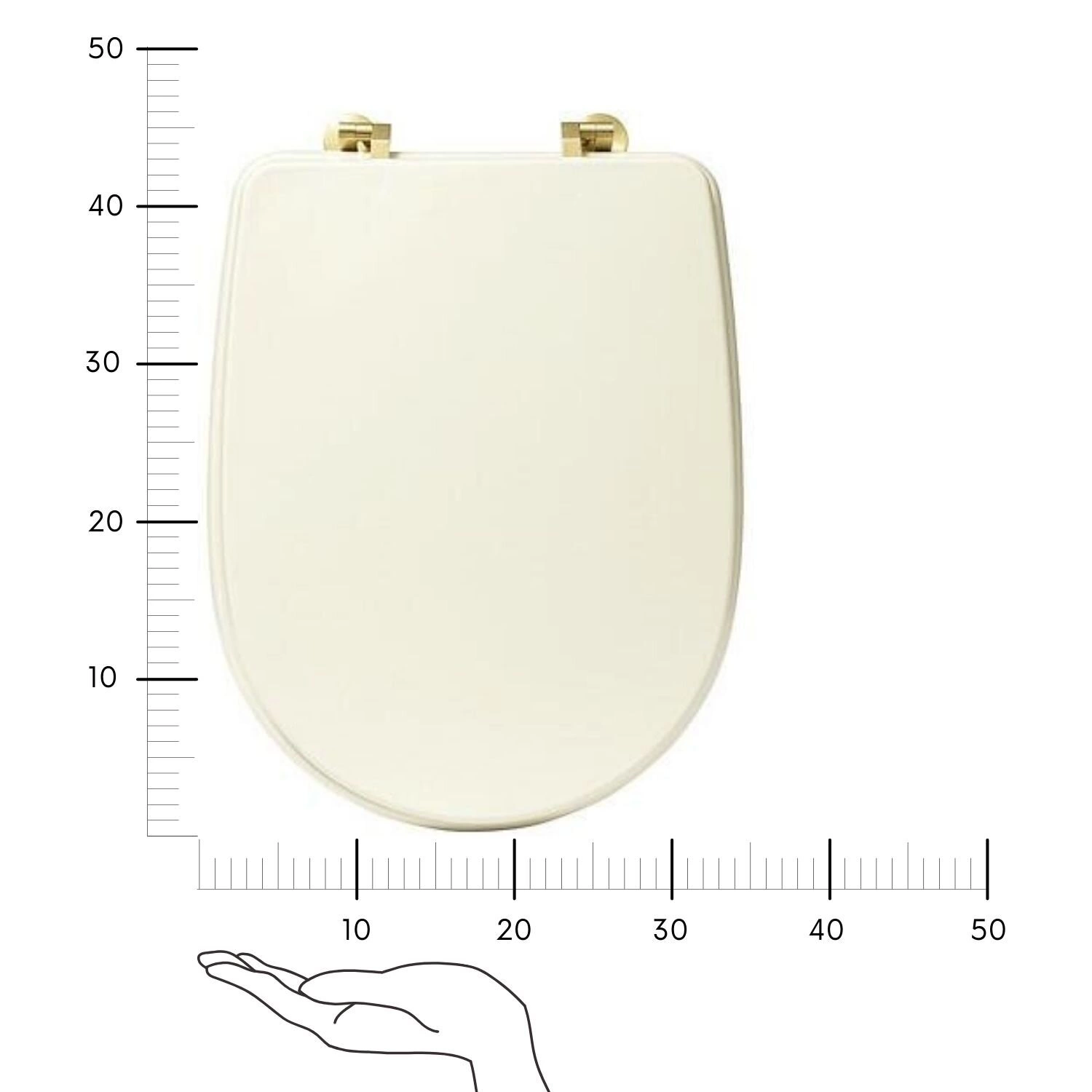 Rozměry sedátka (36 cm šířka, 49 cm hloubka, 4,5 cm výška) dělají z Duo béžového WC sedátka 5five simply smart praktické a stylové řešení pro každou toaletu, kde je důležitý komfort, odolnost a atraktivní vzhled.
