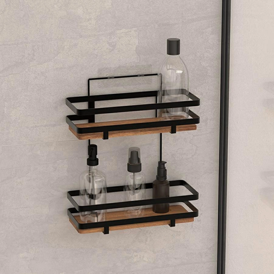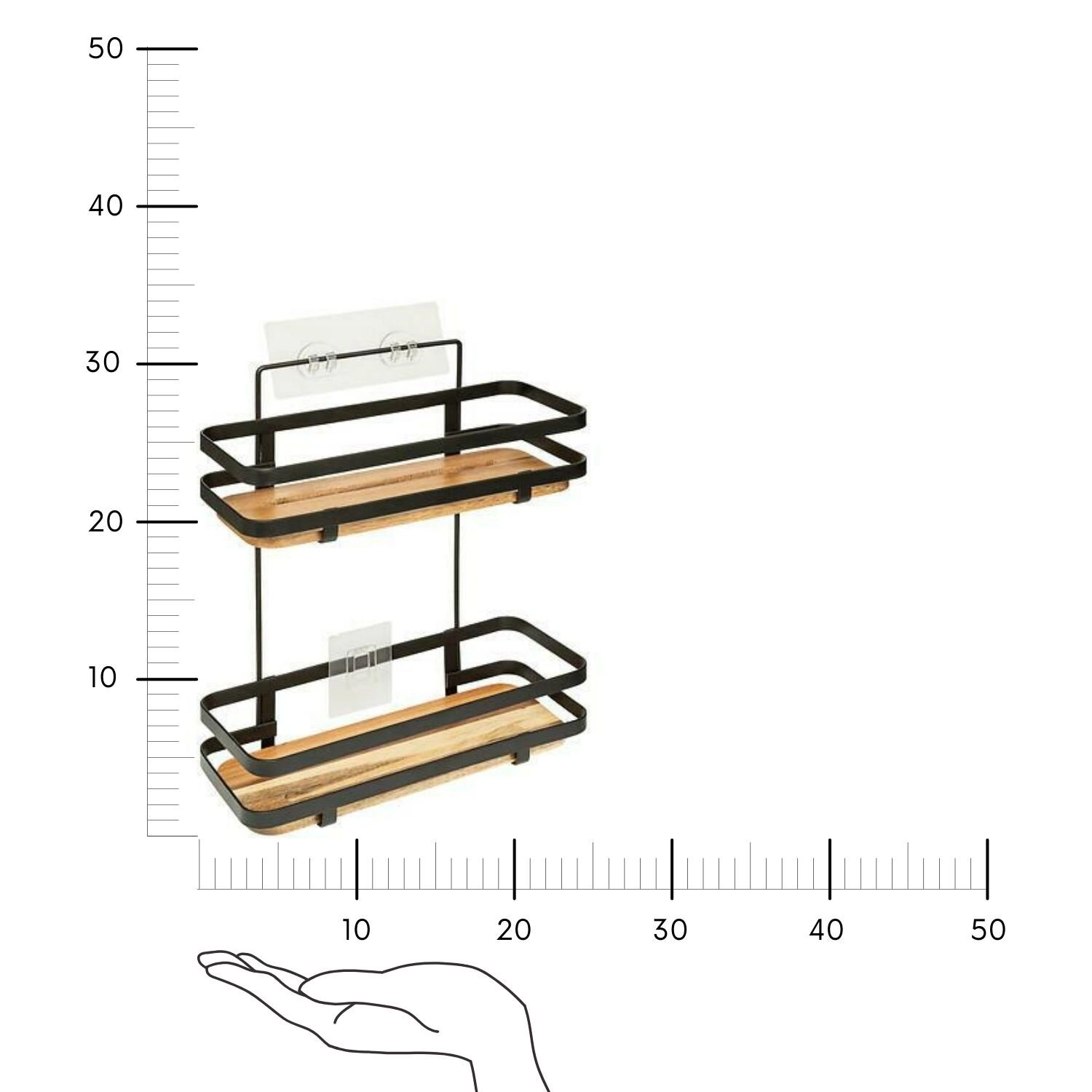 Koupelnová police Blackacia od značky 5five simply smart je praktickým a stylovým řešením pro každou moderní koupelnu. Vyrobena z akáciového dřeva v kombinaci s kovovými prvky v hluboké černé barvě, spojuje industriální design s maximální funkčností. Samolepicí instalace umožňuje snadné a rychlé umístění police přímo do sprchového koutu bez nutnosti vrtání do stěny. S rozměry 30 cm na výšku, 15,5 cm na šířku a 25,5 cm do hloubky poskytuje pohodlný prostor na kosmetiku a koupelnové doplňky.