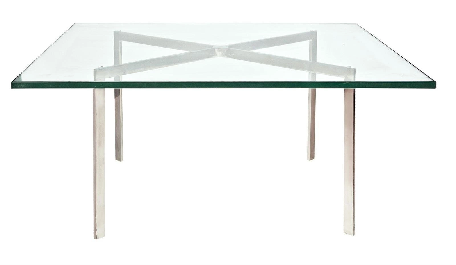 Skleněný čtvercový konferenční stolek Ba inspirovaný Barcelona Table moderní do obýváku 100x100 cm