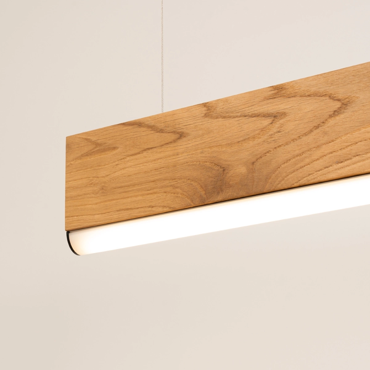 Závěsné LED svítidlo LYKKE dubové 150 cm moderní nad stůl nebo kuchyňský ostrůvek do obývacího pokoje