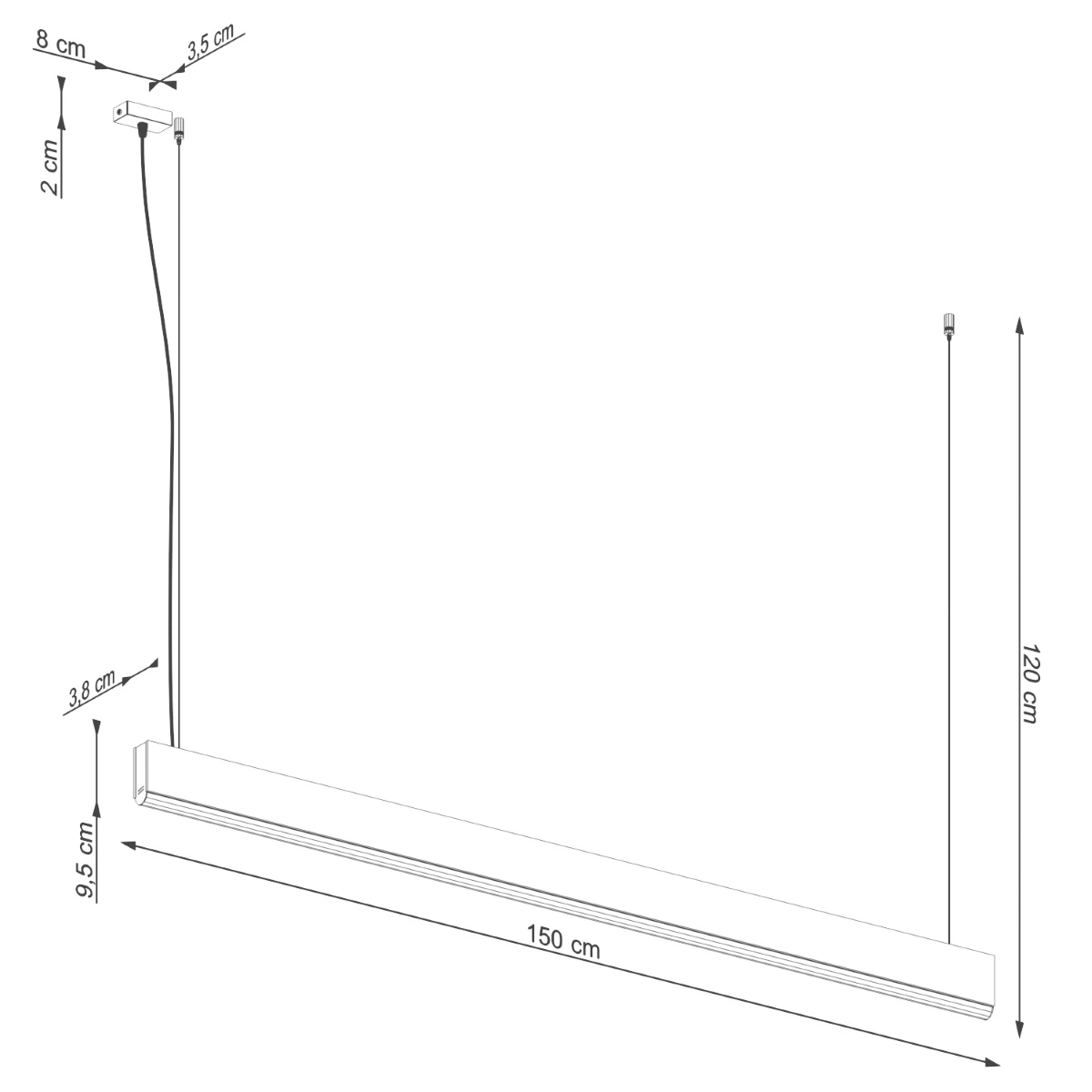 - Délka 150 cm – ideální lampa nad stůl nebo kuchyňský ostrůvek, rovnoměrně osvětluje plochu