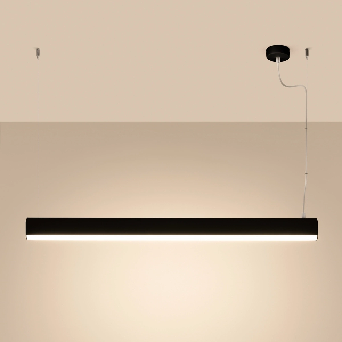 Závěsné svítidlo FARGE od značky Thoro je moderní model o délce 120 cm, vyrobený z odolného hliníku v elegantní černé barvě. Integrovaný LED zdroj světla s teplotou chromatičnosti 4000K zajišťuje příjemné a rovnoměrné osvětlení. Nastavitelná výška zavěšení umožňuje perfektně přizpůsobit lampu prostoru nad jídelním stolem, v obývacím pokoji, jídelně nebo nad kuchyňským ostrůvkem.
