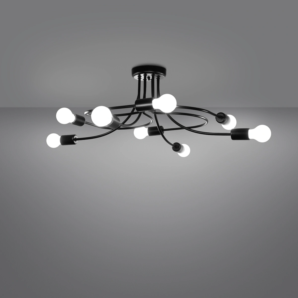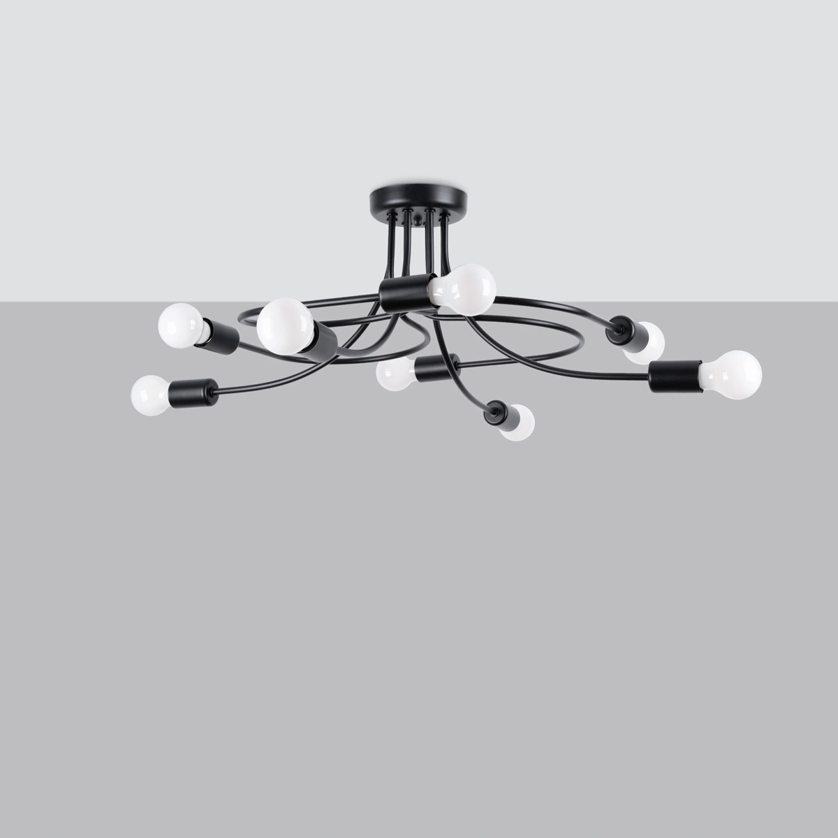 Loftový lustr LEVAR 8 od značky SOLLUX LIGHTING je ideální volbou pro milovníky syrového industriálního stylu. Celokovový lustr z černé oceli o průměru 58 cm a výšce 28 cm nabízí osm světelných bodů, které zajišťují rovnoměrné a rozptýlené osvětlení obývacího pokoje, jídelny nebo ložnice. Minimalistický design a promyšlená konstrukce dělají z této stropní lampy nejen efektivní zdroj světla, ale také výrazný, designový prvek v každém interiéru.
