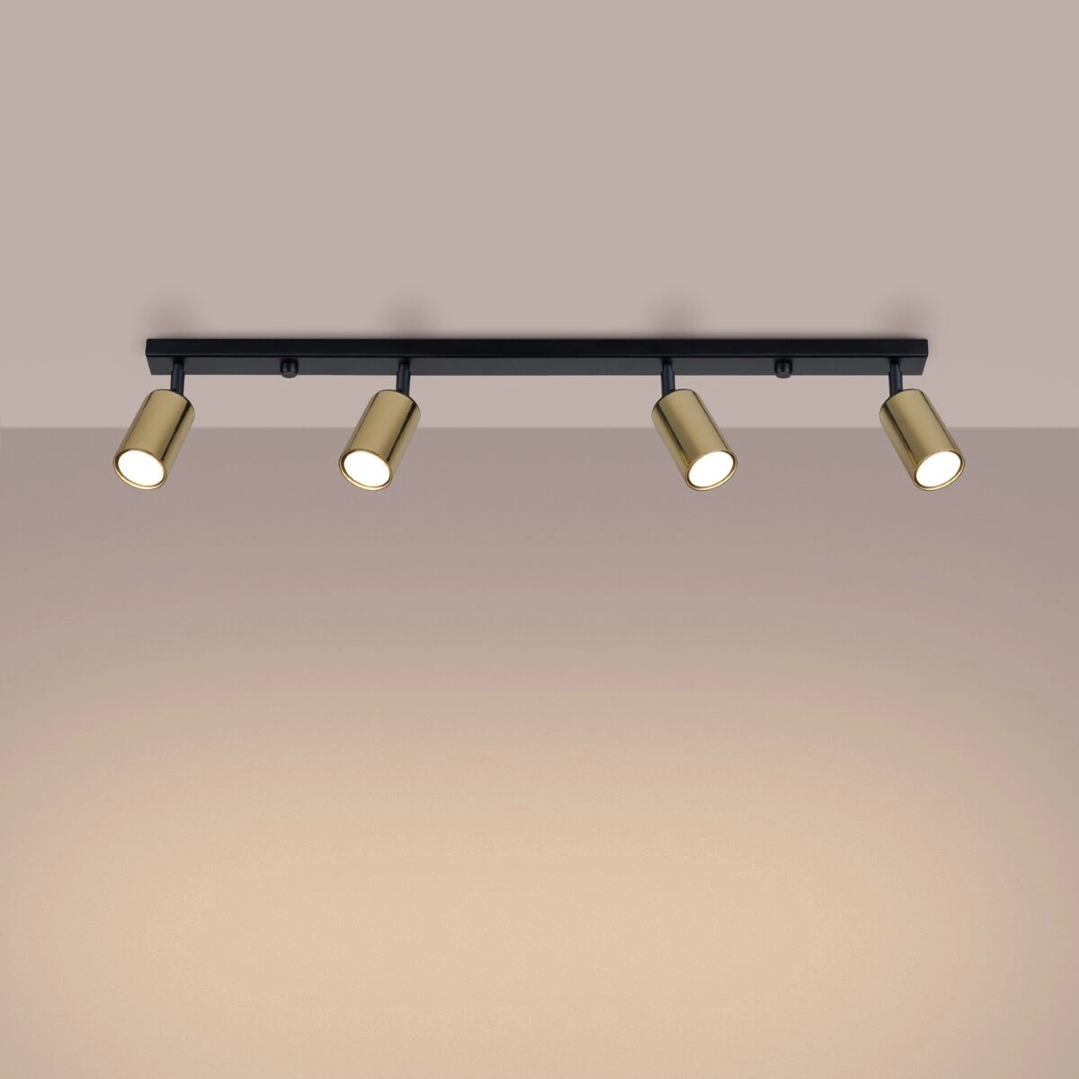 Moderní stropní svítidlo WINX 4L černé zlaté od značky Sollux Lighting je precizně zpracovaná ocelová stropní lampa, která zaujme unikátní kombinací barev a funkčností. Štíhlý, podlouhlý tvar (šířka 82 cm, výška 18,5 cm, hloubka 6 cm) zajistí dokonalé osvětlení obývacího pokoje, ložnice, jídelny i chodby. Čtyři samostatná světelná místa na žárovky GU10 umožňují přesné nasměrování světla – snadno si tak vytvoříte ideální atmosféru pro relaxaci nebo setkání v moderním interiéru.