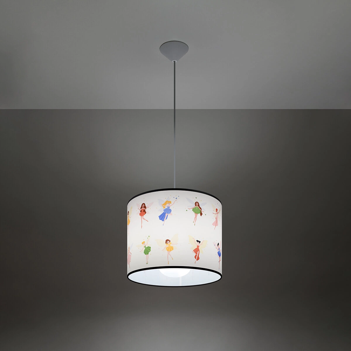 Závěsné svítidlo FAIRY 30 od značky SOLLUX LIGHTING je moderní a barevné osvětlení s textilním stínidlem o průměru 30 cm, které skvěle prozáří a ozdobí dětský pokoj. Vyrobené z odolného PVC, svítidlo zajišťuje bezpečné a rovnoměrně rozptýlené světlo, čímž vytváří příjemnou atmosféru pro učení i hraní. Jeho jedinečný pohádkový design s motivem víl bude výrazným prvkem v každém dětském interiéru.