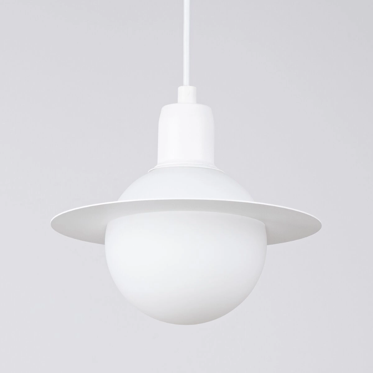 - Bílá závěsná lampa koule – univerzálnost a lehkost – hodí se do obýváku, jídelny, kuchyně, předsíně i studentského pokoje.