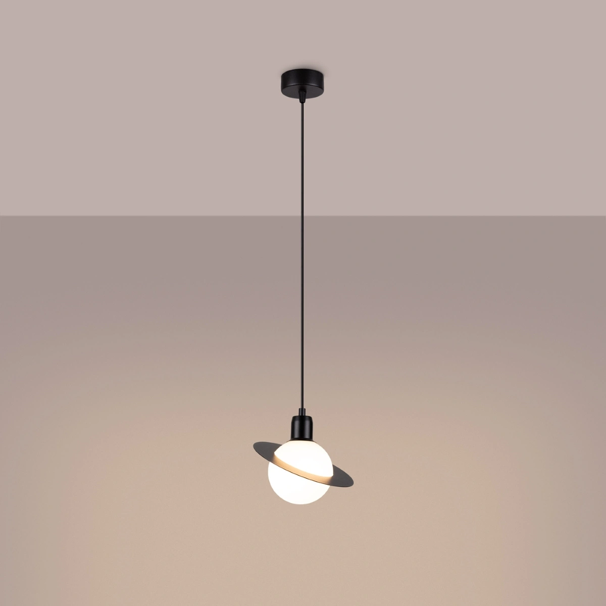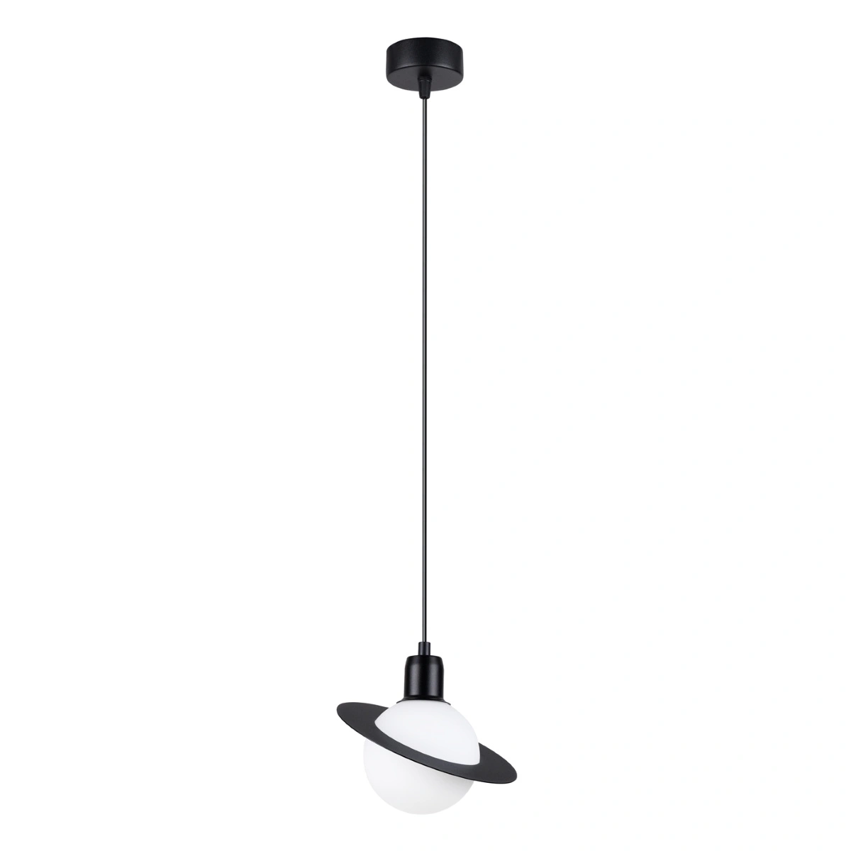 Závěsná lampa koule HYPERION 1 černá je skvělou volbou pro milovníky současného designu, kteří oceňují jednoduchost a výrazný charakter bytových doplňků. Kulaté stínidlo z mléčně bílého skla jemně rozptyluje světlo a vytváří příjemnou atmosféru v místnosti. Minimalistický černý závěs perfektně zapadá do moderních interiérů a stává se výrazným, ale nerušivým dekorativním prvkem.