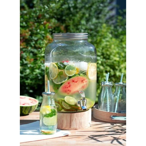 Skleněný nápojový zásobník Yorkshire 8 l značky 5five simply smart je moderní dávkovač, který spojuje funkčnost s elegantním designem. Vyrobený z čirého skla a doplněný kovovými prvky, perfektně poslouží jako praktický dávkovač nápojů na večírky nebo zahradní setkání. Zásobník s kohoutkem o objemu 8 litrů umožňuje pohodlně servírovat limonádu, vodu či jiné oblíbené nápoje i většímu počtu hostů.
