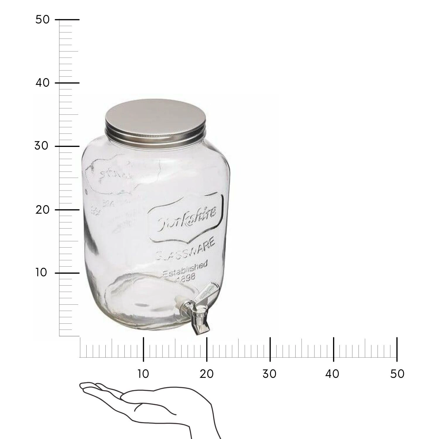 Průhledné sklo umožňuje kreativně kombinovat nápoje s ovocem, čerstvými bylinkami nebo ledem, což nejen skvěle vypadá, ale také usnadňuje kontrolu množství zbývajícího nápoje. Kovové víko chrání obsah před hmyzem a nečistotami. Nápojový zásobník Yorkshire je praktická a estetická volba pro všechny, kteří ocení pohodlí při pořádání společenských setkání.