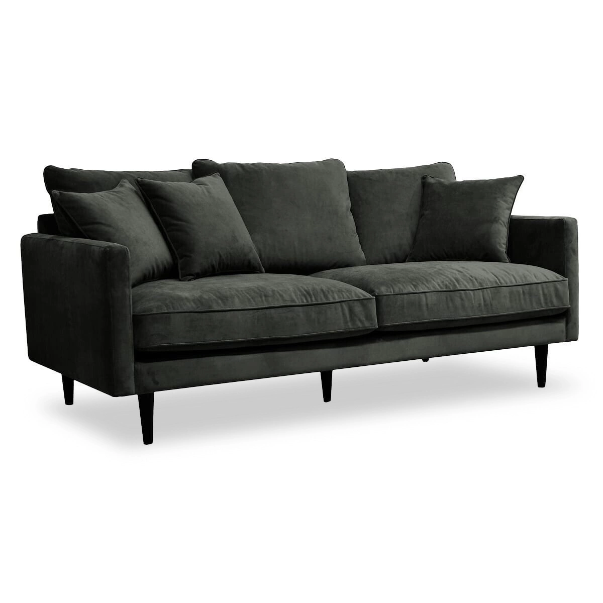 Model Candice zaujme hlubokým, tmavě zeleným odstínem a sametovou strukturou látky, která decentně odráží světlo a dodává interiéru jedinečnou eleganci. Jednoduchý tvar a štíhlé černé nohy odpovídají současným trendům, díky čemuž se pohovka skvěle hodí jak do minimalistických, tak i loftově zařízených prostor. Perfektní řešení pro ty, kteří chtějí svému interiéru dodat svěžest a výrazný charakter.