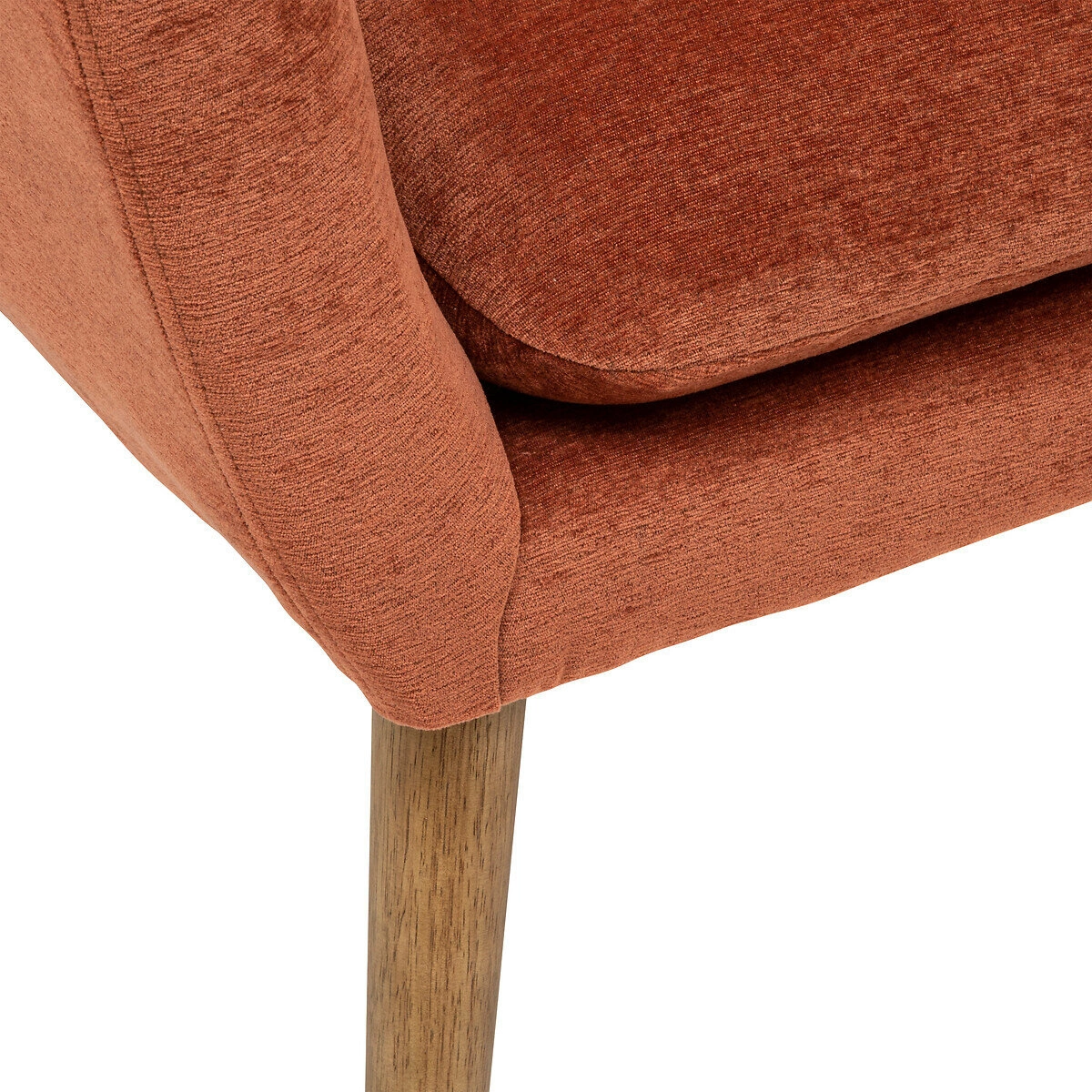 Hnědý samet křesla Sinel vynikne v interiérech inspirovaných retro stylem. Jemné zaoblení a štíhlé nohy z masivního kaučukového dřeva jasně odkazují na estetiku 60. let a vnášejí do prostoru příjemnou atmosféru i lehký nádech nostalgie. Toto křeslo do obýváku upoutá pozornost a stává se nejen komfortním místem k odpočinku, ale i originální dekorací pokoje.
