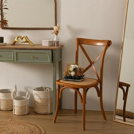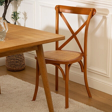 Volbou dřevěné židle Isak investujete do trvanlivosti a nadčasového designu. Bukové dřevo je známé svou odolností a stabilitou, zatímco ratanový sedák je lehký, prodyšný a příjemný na dotek. Maximální nosnost do 110 kg zajišťuje bezpečné používání a pevnost i v intenzivně využívaných prostorech.