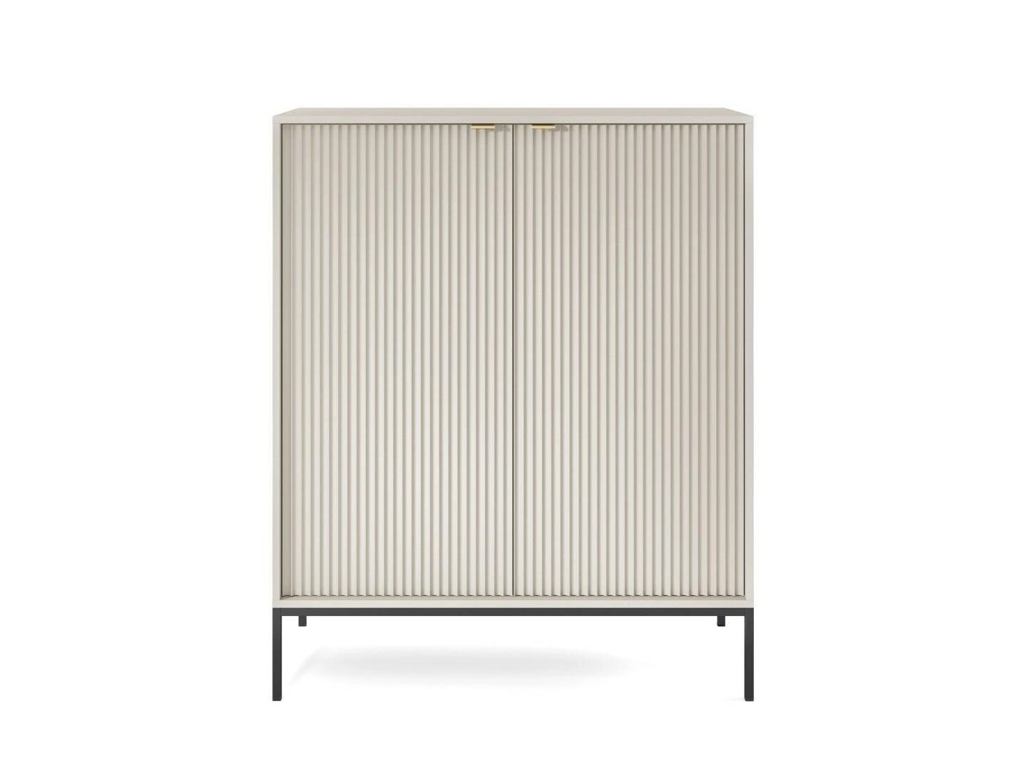 Vysoká komoda Delicious s drážkovaným povrchem v kašmírové barvě na černých nohách moderní do obývacího pokoje