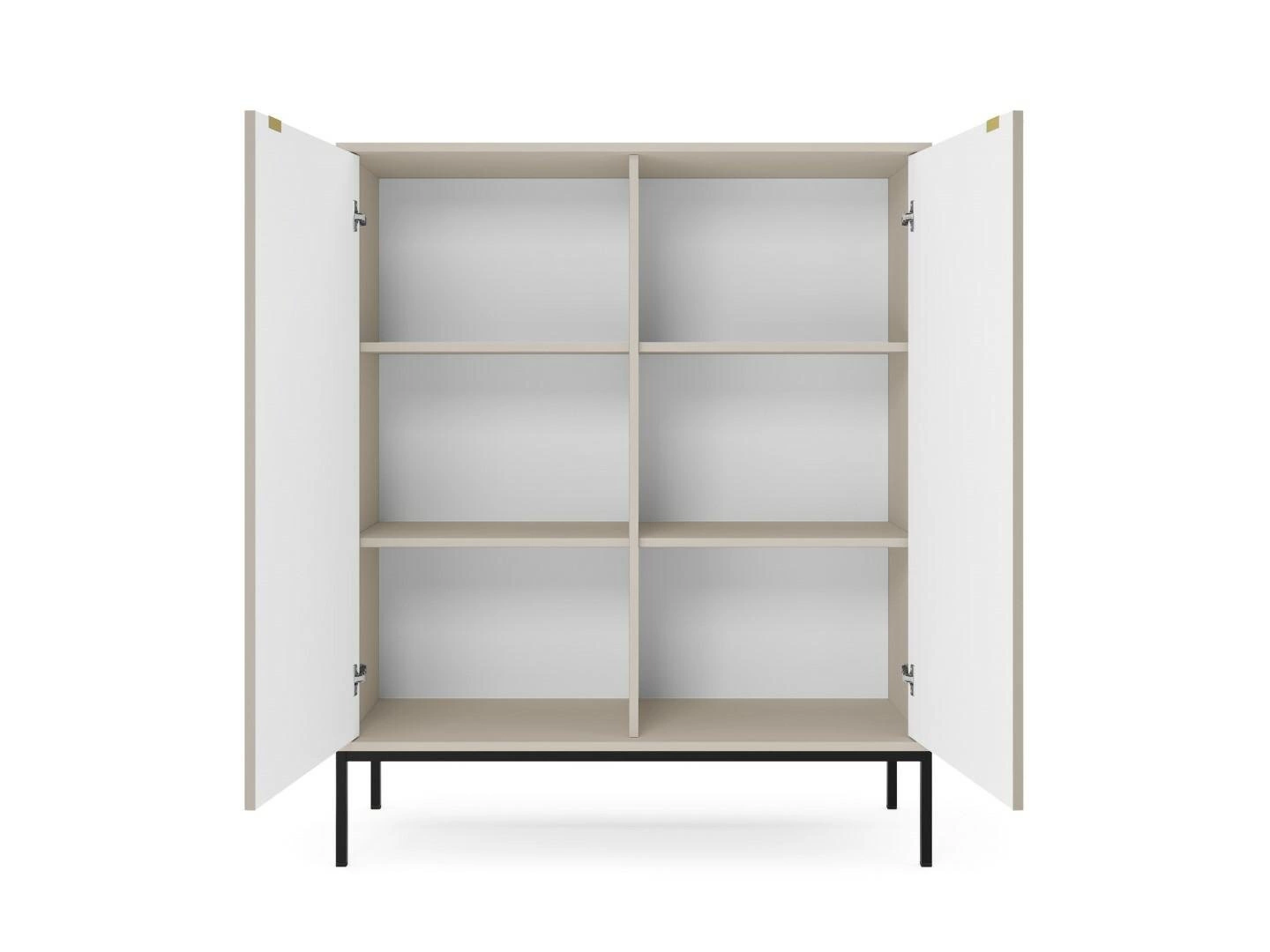 Komoda Delicious od značky Intesi je vysoký, moderní kus nábytku o šířce 104 cm, dokonale ladící v elegantním odstínu kašmíru a postavený na černých kovových nohách. Výrazné drážkované čelo a matný povrch podtrhují její jedinečný design. Díky šesti policím a dvěma prostorným skříňkám je komoda ideální do obývacího pokoje, ložnice nebo předsíně, kde nabízí praktický úložný prostor a zároveň stylovou dekoraci interiéru.
