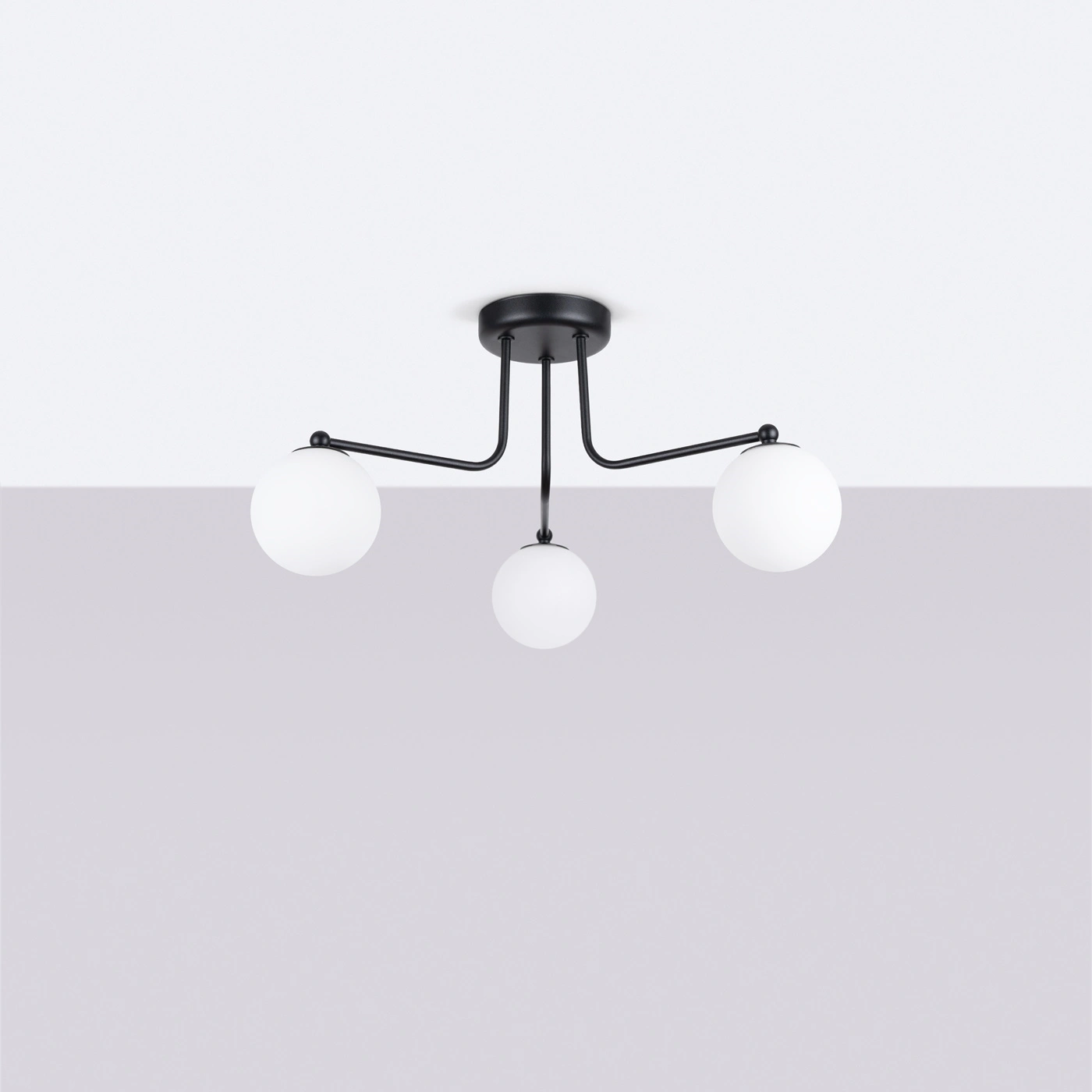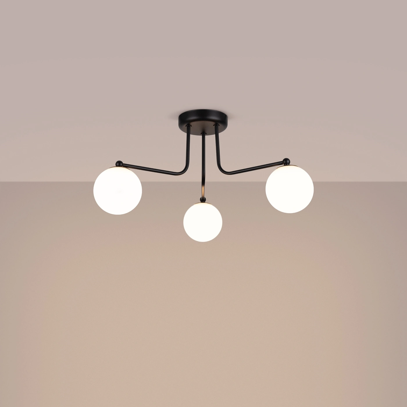 Černý lustr ASTRAL 3 je ztělesněním současné elegance, která perfektně zapadne do minimalistických, moderních i loftových interiérů. Výrazná kovová konstrukce v hluboké černi kontrastuje s bílými skleněnými koulemi a vytváří efektní prvek výzdoby. Díky promyšlenému designu tento model nejen prosvětlí prostor, ale zároveň se stává dekorativní dominantou — ať už nad jídelním stolem, nebo v centrálním bodě obývacího pokoje.