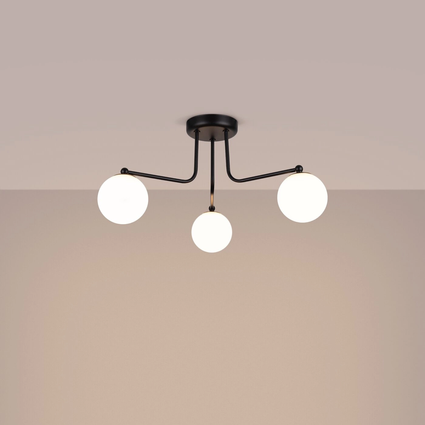 Lustr ASTRAL 3 černý od značky SOLLUX LIGHTING je minimalistické stropní svítidlo o průměru 62 cm, vyrobené z odolné oceli a elegantního skla. Tři kulaté stínidla v matné bílé jemně rozptylují světlo a vytvářejí harmonickou atmosféru v obývacím pokoji, jídelně nebo ložnici. Tento model spojuje moderní design s funkčností, nabízí rozptýlené osvětlení ideální pro každodenní použití.