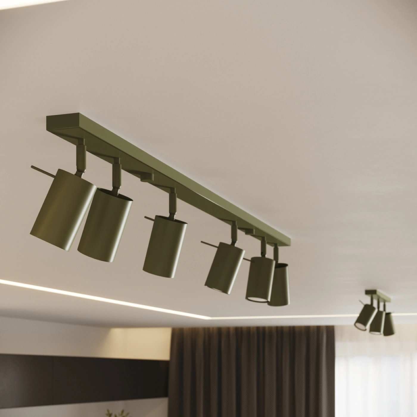 Minimalistický a zároveň výrazný – takový je stropní svítidlo RING 6L. Jeho štíhlé ocelové válce v hlubokém olivově zeleném provedení vnášejí do interiéru svěžest a jedinečný styl. Toto moderní stropní svítidlo skvěle zapadne do aktuálních trendů v bydlení a stane se nejen zdrojem světla, ale i stylovou dekorací stropu. Olivově zelená barva rozbíjí monotónnost klasických odstínů, oživuje prostor a vytváří útulnou atmosféru – zejména v obývacím pokoji či ložnici.
