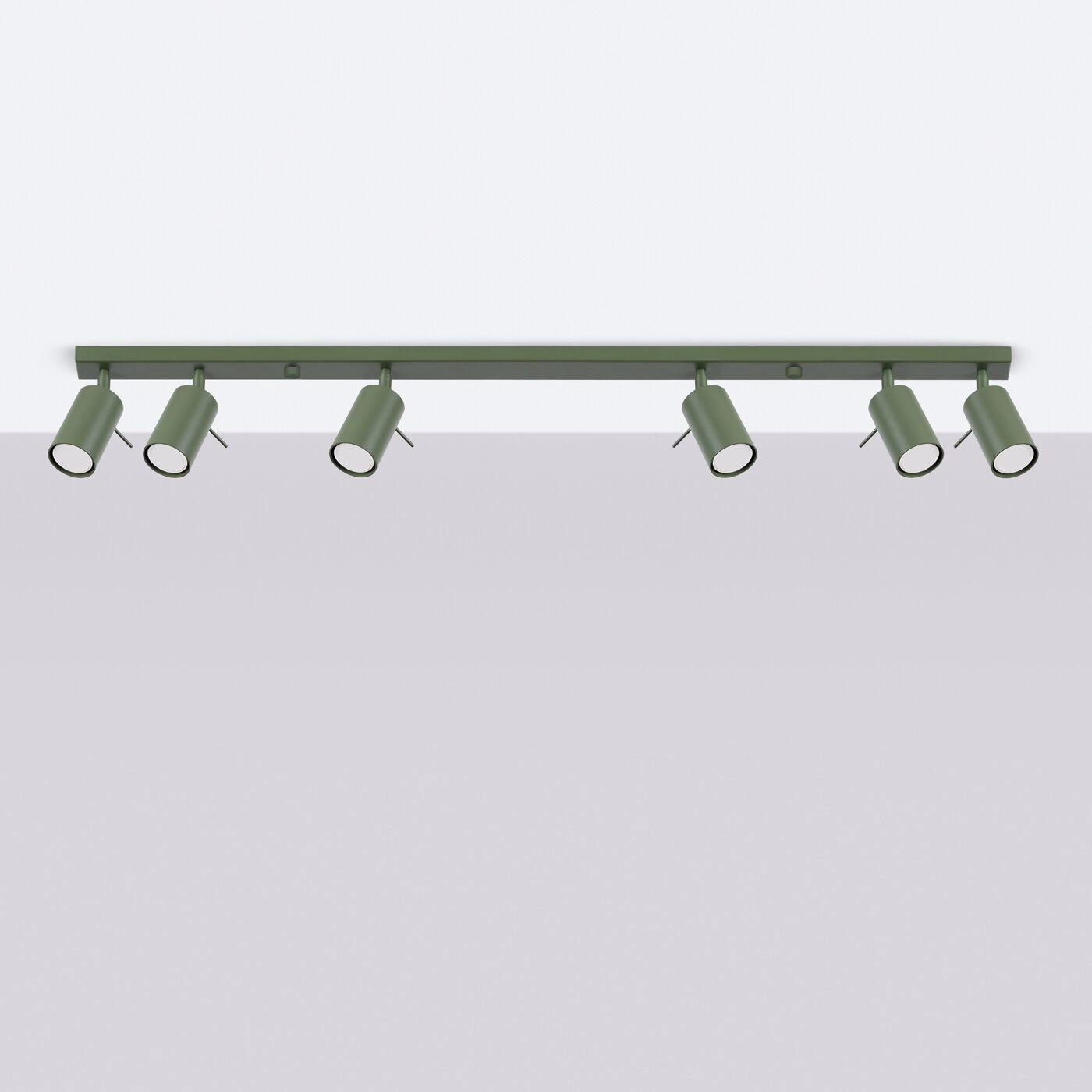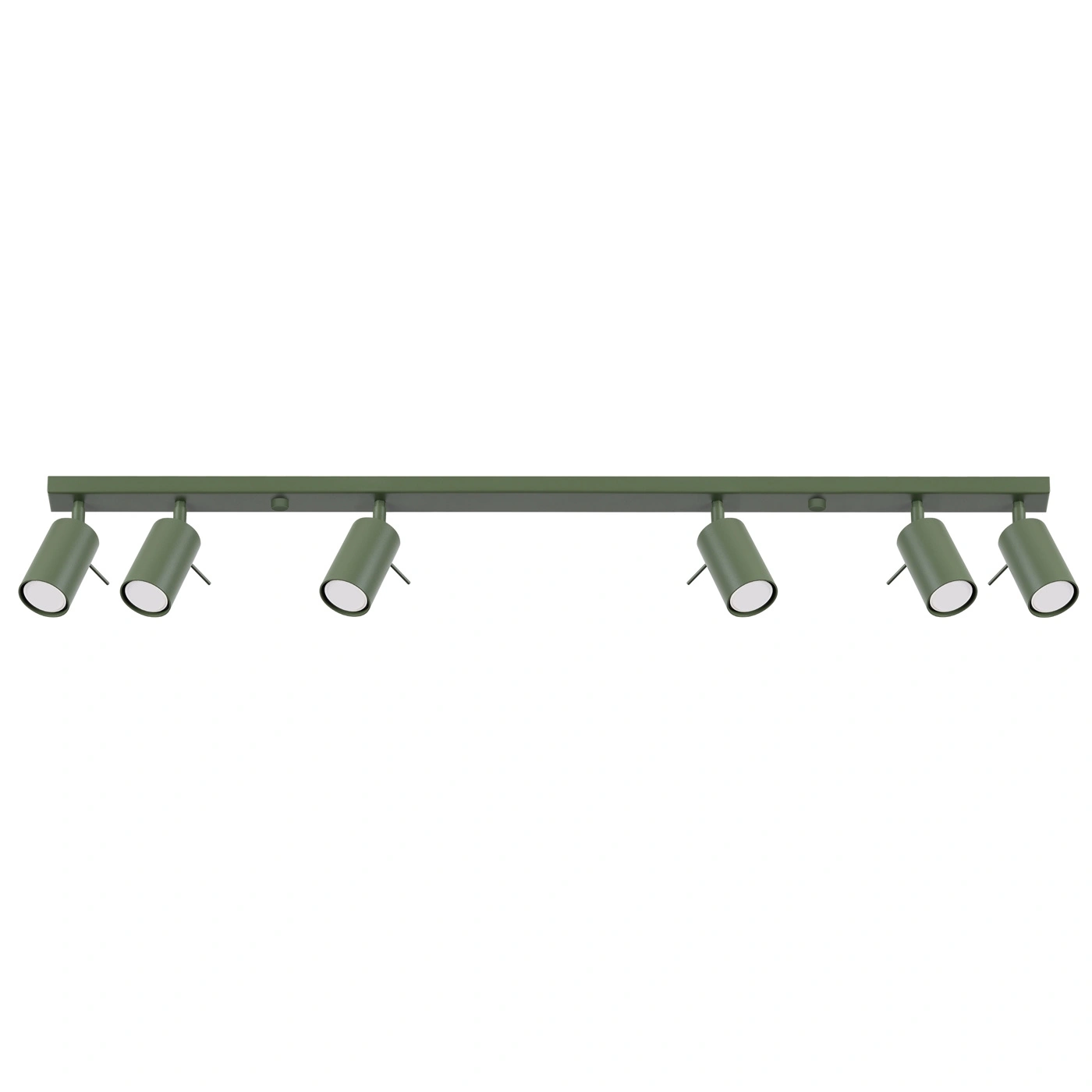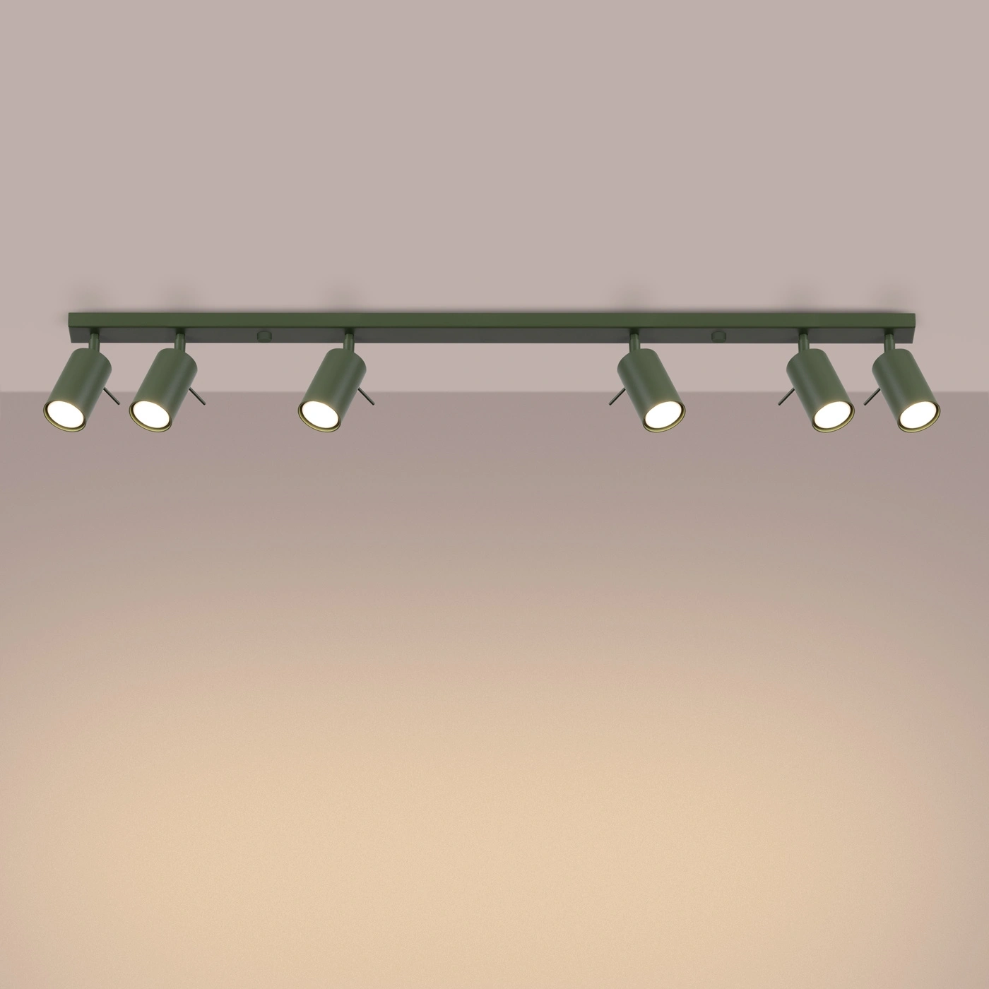Stropní svítidlo RING 6L v olivově zelené barvě od značky Sollux je moderní řešení osvětlení, které zaujme minimalistickým tvarem válce a intenzivním olivově zeleným odstínem. Svítidlo je vyrobeno z oceli, má šířku 117 cm a výšku 17 cm, takže se skvěle hodí jako výrazný světelný prvek v obývacím pokoji, ložnici, předsíni nebo domácí pracovně. Šest nastavitelných stínidel umožňuje přesně nasměrovat světlo do vybraných částí místnosti a podtrhnout její moderní charakter.