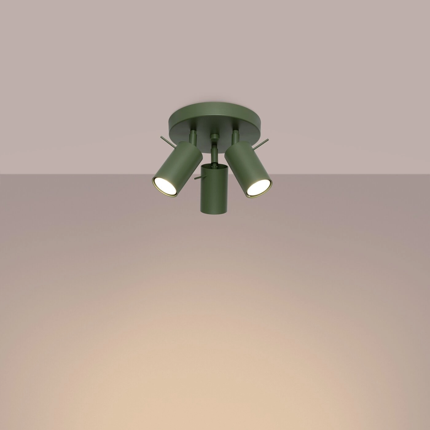 Stropní svítidlo RING 3P od značky SOLLUX LIGHTING je moderní světelná instalace vyrobená z oceli v originální olivově zelené barvě. Tento model je vybaven třemi pohyblivými stínidly, která umožňují přesně nasměrovat světlo tam, kde je potřeba. Díky kompaktním rozměrům – šířka a hloubka 19,5 cm a výška 18,5 cm – se stropní svítidlo skvěle hodí jako centrální osvětlení do obývacího pokoje, ložnice, předsíně nebo pracovny.