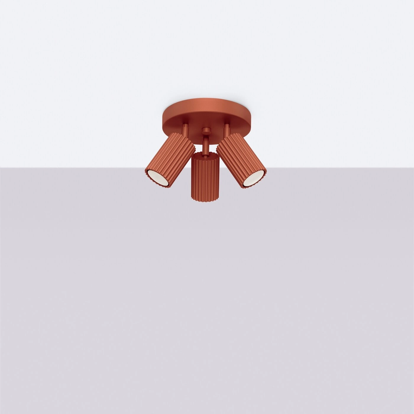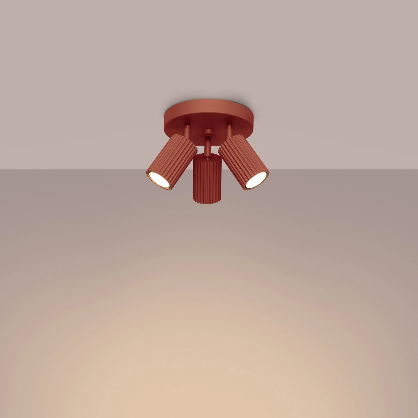Stropní svítidlo KARBON 3P od značky SOLLUX LIGHTING je minimalistická lampa s červeným hliníkovým povrchem, vybavená třemi pohyblivými stínidly, která umožňují individuální nastavení směru světla. Díky kompaktním rozměrům (výška 18 cm a šířka 19,5 cm) je ideální volbou do obývacího pokoje, ložnice, předsíně nebo pracovny a dodá každému interiéru výrazný, moderní charakter. Funkční objímka na žárovky GU10 vám umožní přizpůsobit intenzitu i barvu světla podle vlastních potřeb.