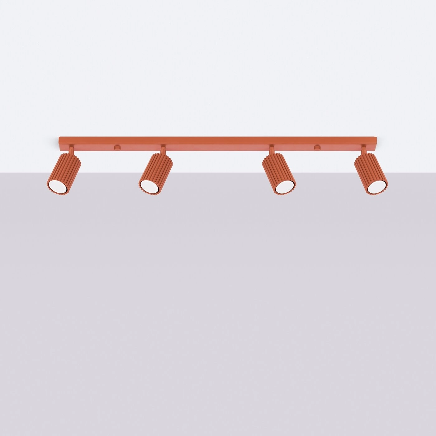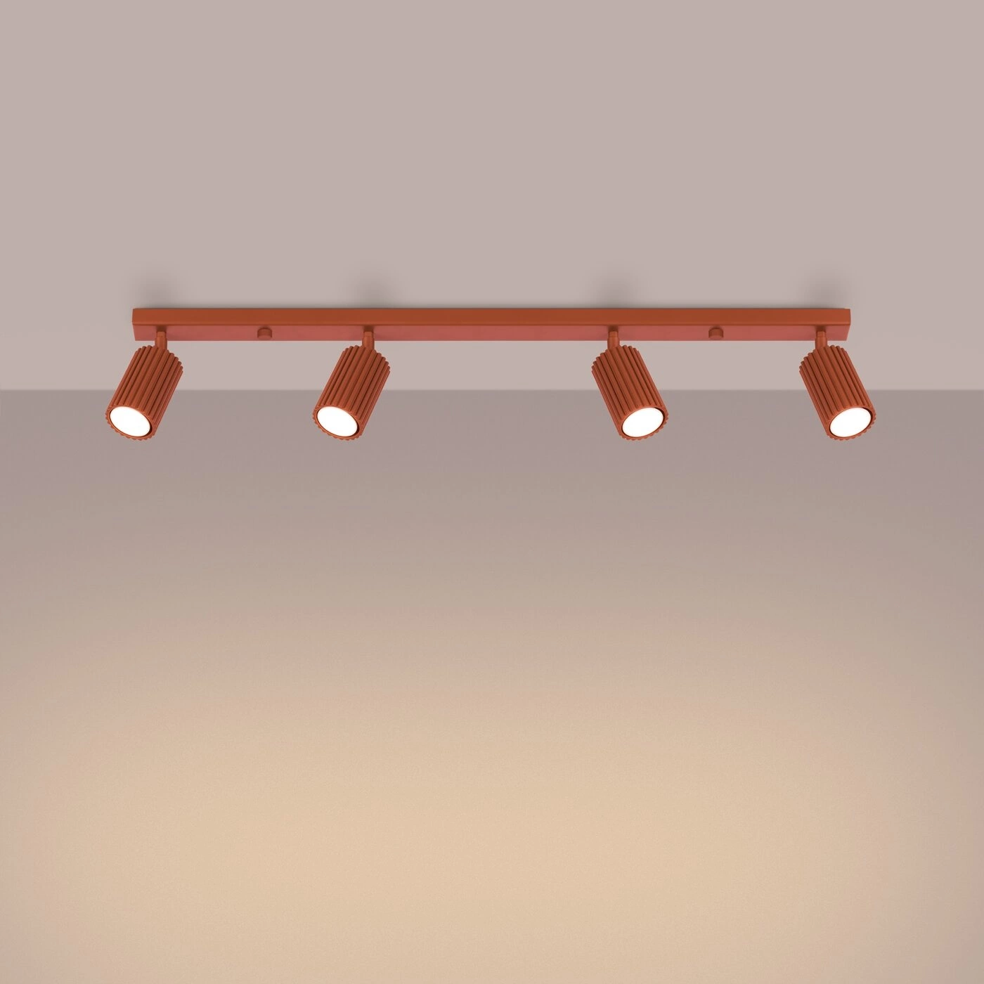 Stropní svítidlo KARBON 4L není pouze funkčním osvětlením, ale i silným dekorativním prvkem. Červený odstín terakoty upoutá pozornost a dodá prostoru energii, stává se tak nepřehlédnutelným detailem v minimalistickém interiéru. Hliníková konstrukce zajišťuje odolnost a nízkou hmotnost, zatímco jednoduchý, liniový tvar přidává celku eleganci bez zbytečné okázalosti.
