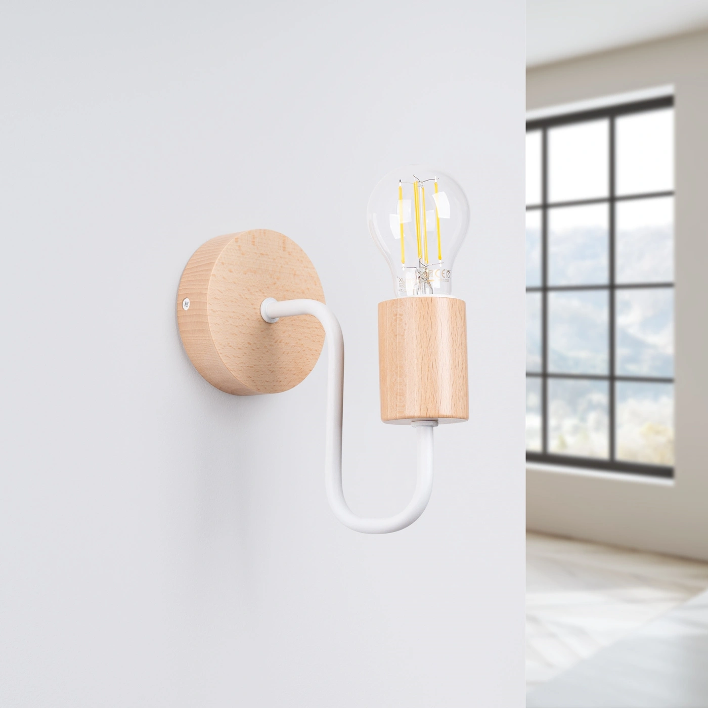 Design svítidla TIMBO je inspirován skandinávskou jednoduchostí a funkčností loftového stylu. Bílý stínidlo krásně kontrastuje s prvky z přírodního dřeva, čímž vnáší do interiéru harmonii a nadčasový styl. Tato nástěnná lampa dokonale zapadá do trendu kombinace surových materiálů s teplými, organickými doplňky, což ocení všichni milovníci minimalistických a zároveň útulných prostor.