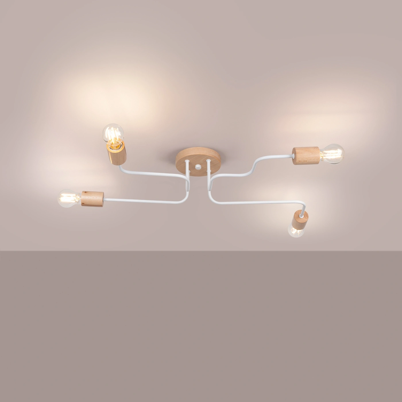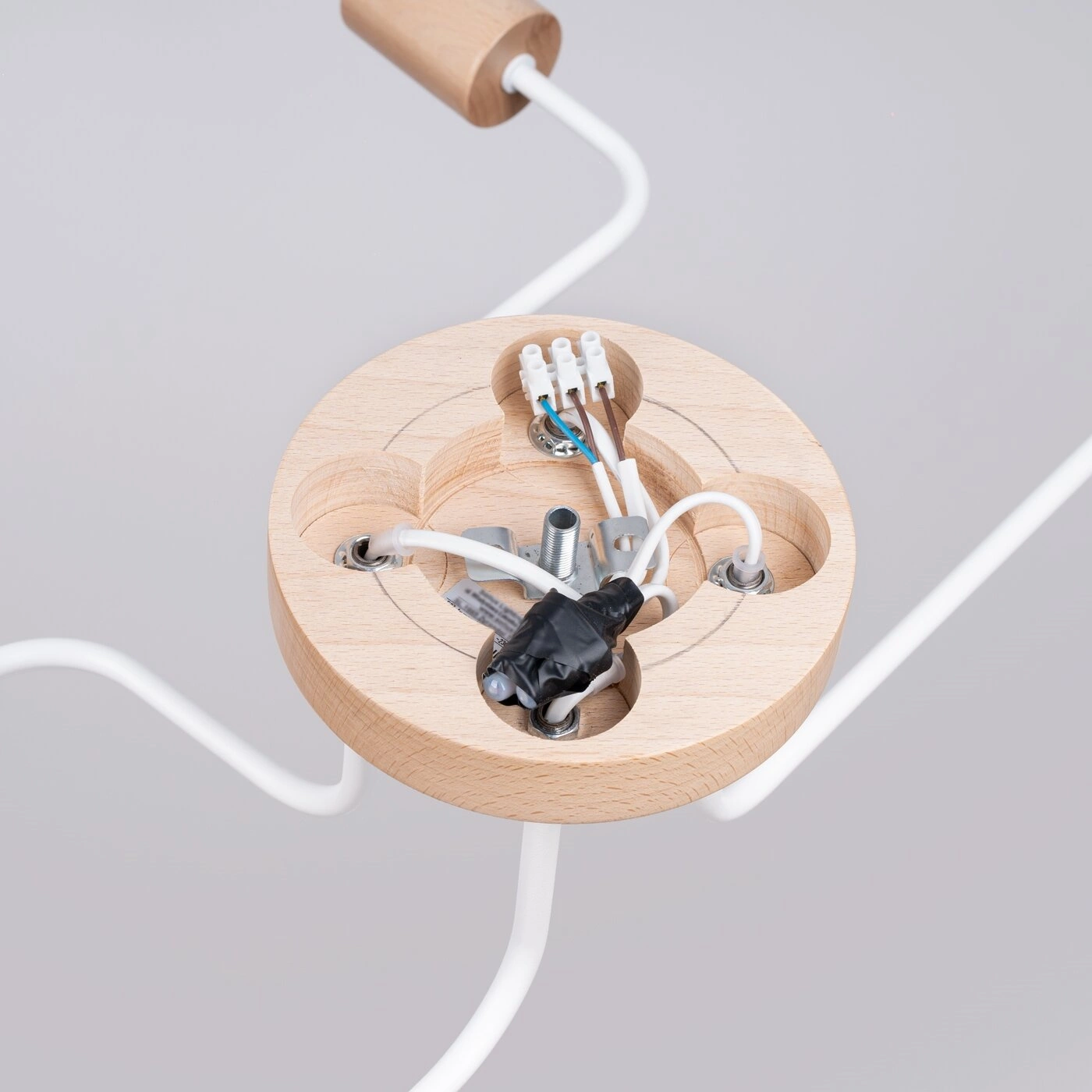 Unikátní spojení bílé barvy a dřeva proměňuje lustr TIMBO 4 v výrazný dekorativní prvek každého domova. Použití pevné oceli a přírodních dřevěných detailů podtrhuje industriální styl a zároveň přináší do prostoru teplo i přirozenost. Geometrický tvar a promyšlené rozmístění čtyř patic pro žárovky E27 umožňují rovnoměrné osvětlení celého pokoje, což oceníte zejména v prostorných obývacích pokojích nebo nad jídelním stolem.
