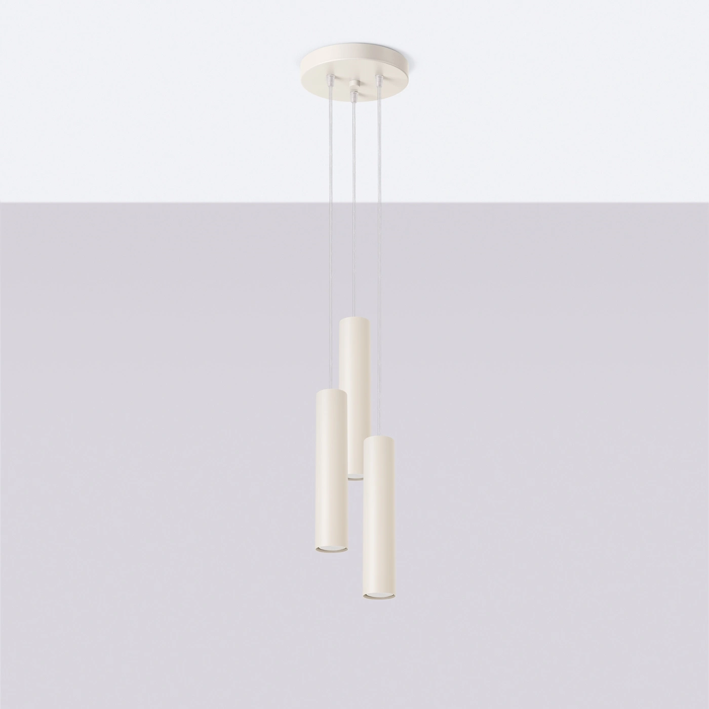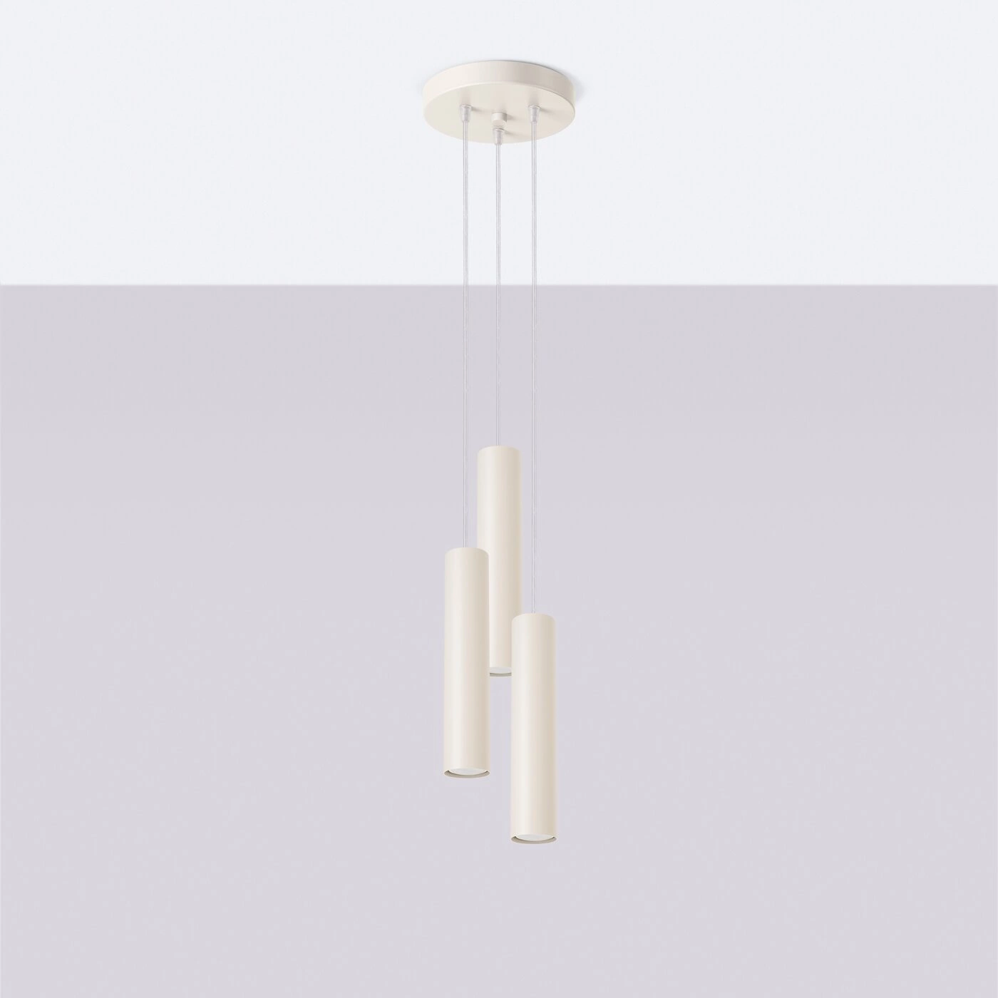 Béžová závěsná lampa Lagos 3-bodová zaujme jednoduchými liniemi a jemnou elegancí. Válcové stínidla z lakované oceli zavěšené na transparentním kabelu představují klasiku loftového stylu v moderním provedení – ideální volba do prostorných obývacích pokojů, jídelen nebo minimalistických kuchyní. Neutrální odstín béžové se skvěle kombinuje jak se světlými, tak tmavšími interiéry a dodává prostoru útulnost i osobitý charakter.